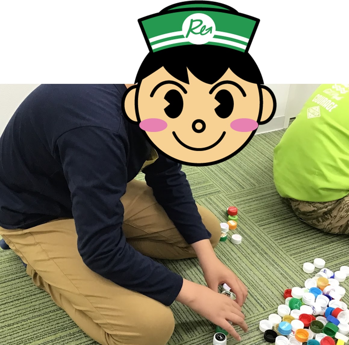 ペットボトルキャップを制限時間内になるべく高く積み上げていただきました!