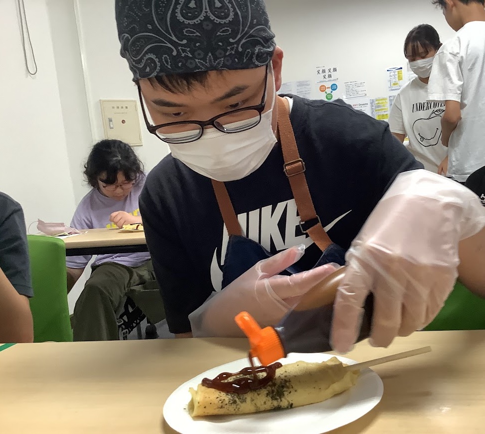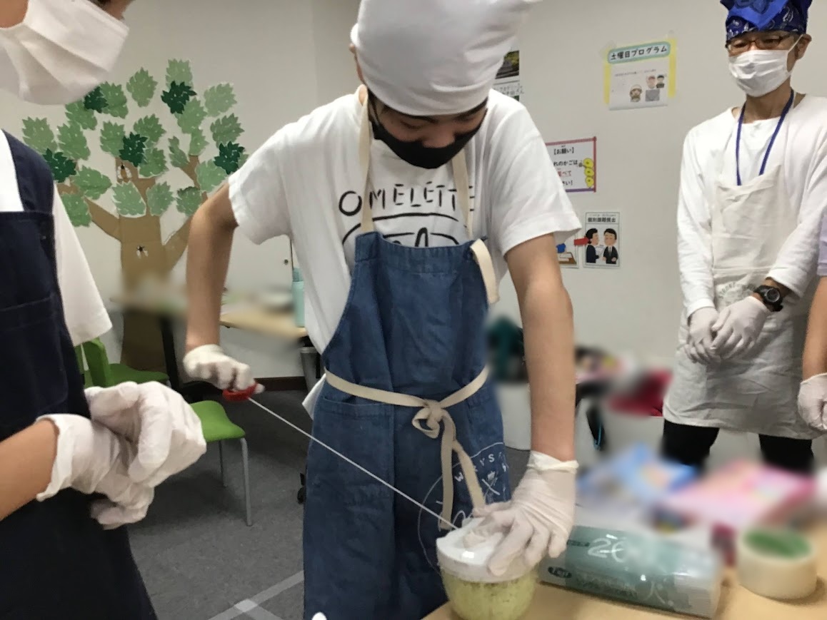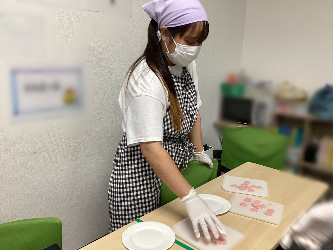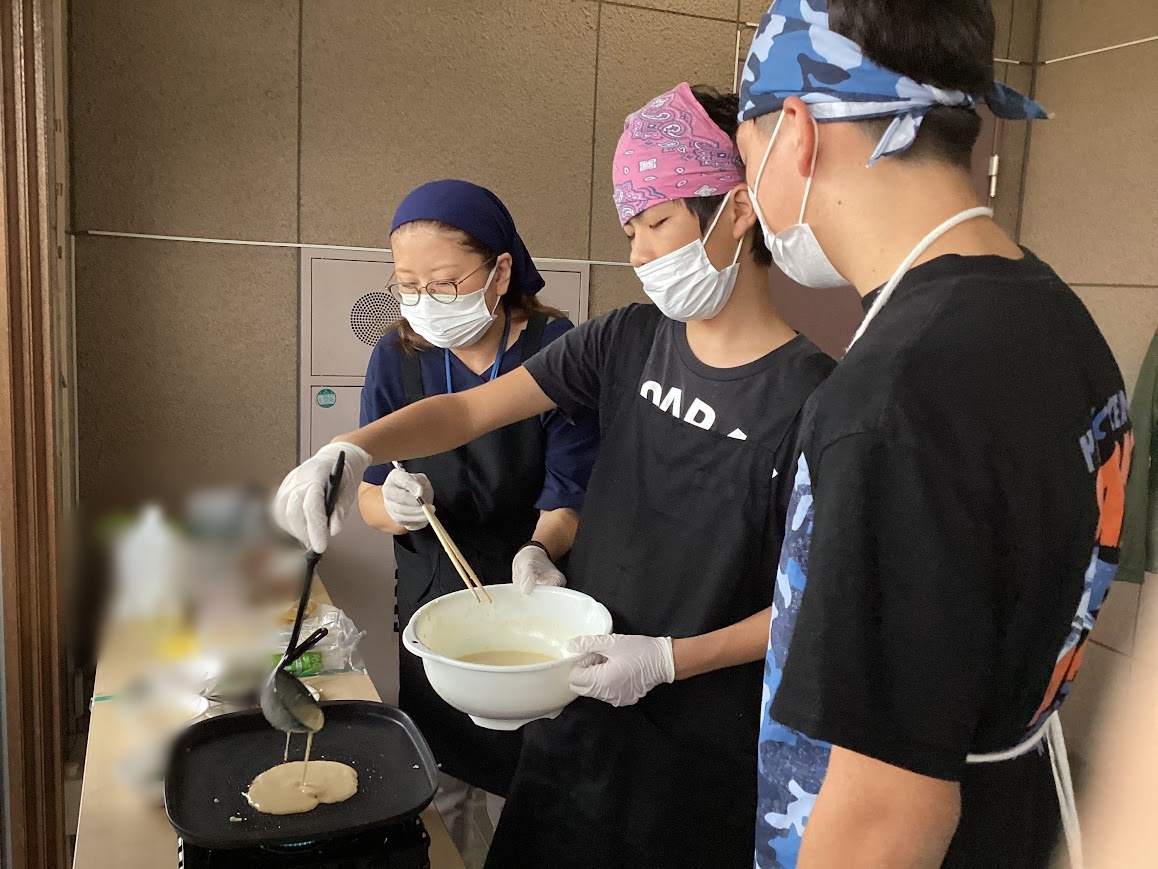 今日は、アカデミー生と一緒に【おやつ作り(どんどん焼き)】を行いました。