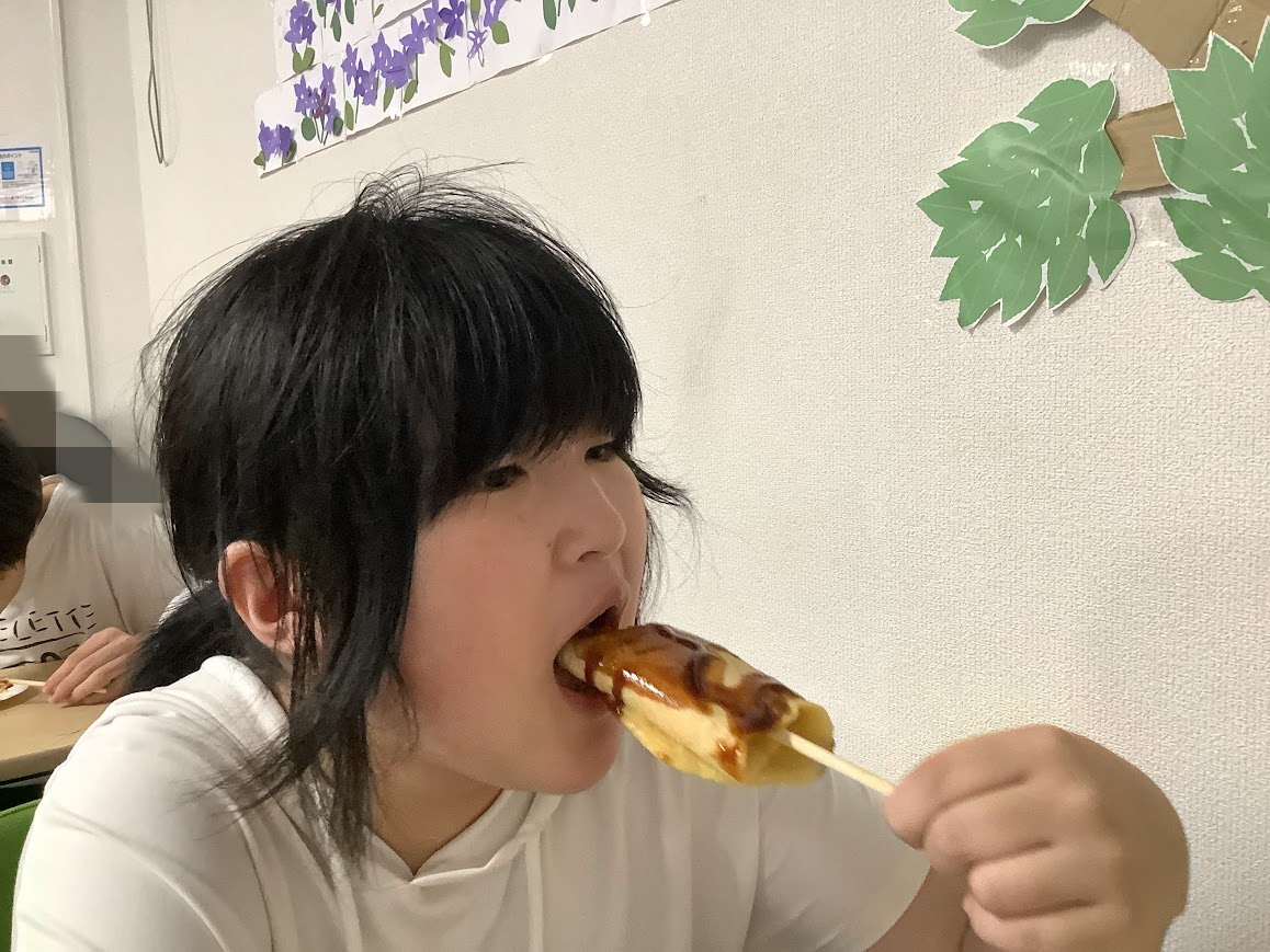 本日のおやつは自分たちで作ったどんどん焼きです。