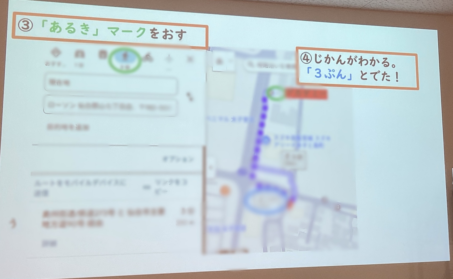 目的地から徒歩でかかる時間の調べ方を確認したら、