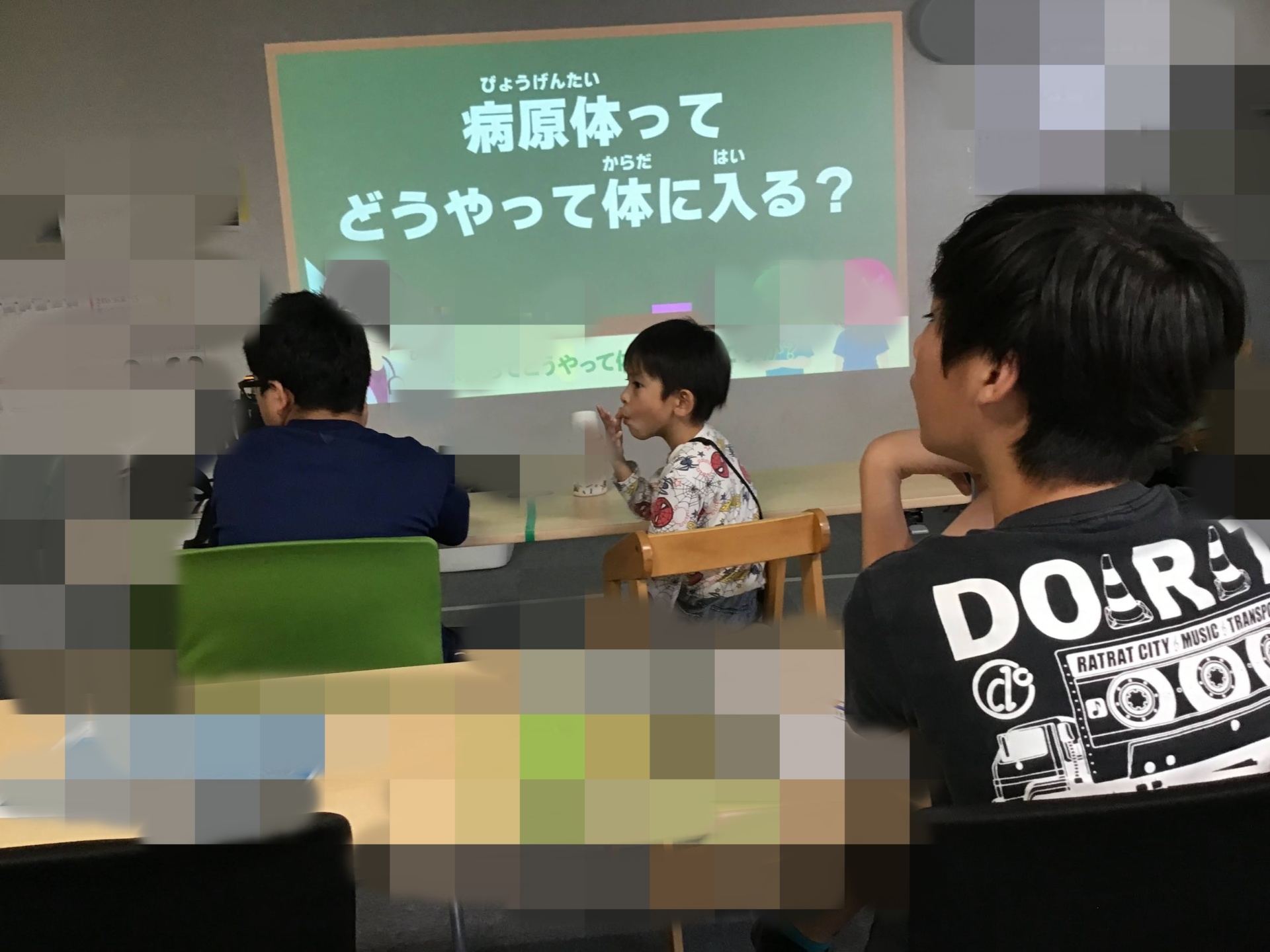 改めて、感染症についてみなさんで確認しながら、対処方法などについての動画を見たり、実際の様子を見ていただきました。