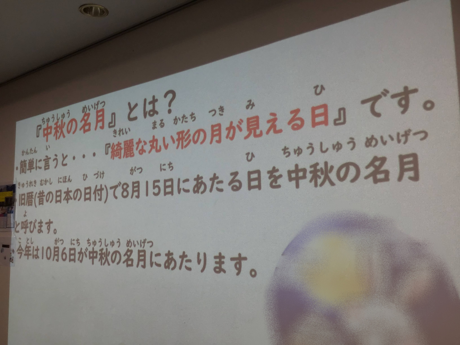 中秋の名月についての説明をし、2種類のタイピングから