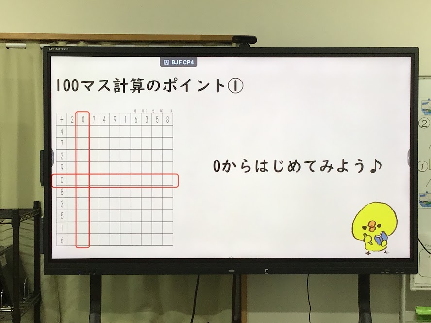 100マス計算をする時のポイントを確認した後に、集中して取り組まれました。