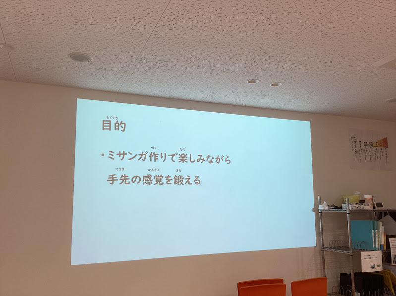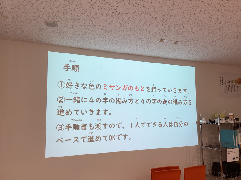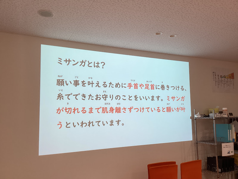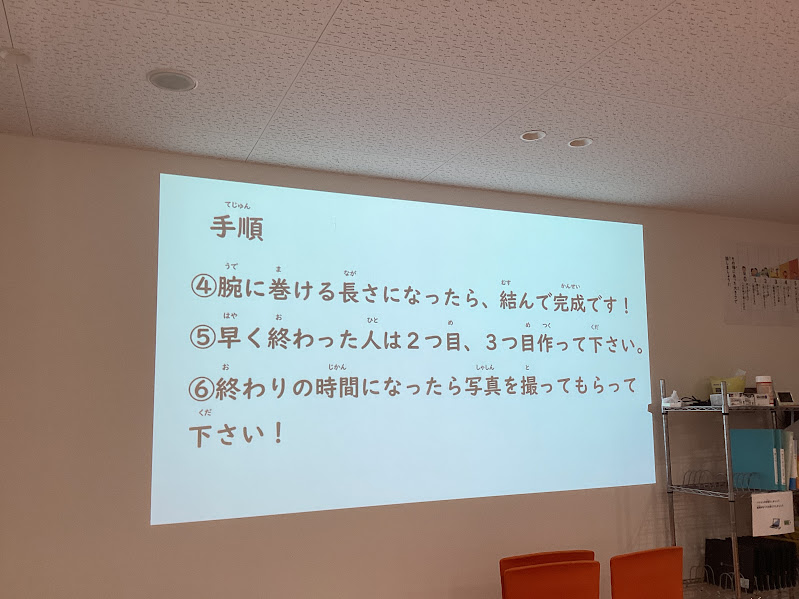 本日のプログラムは「【制作活動】ミサンガ作り」です。