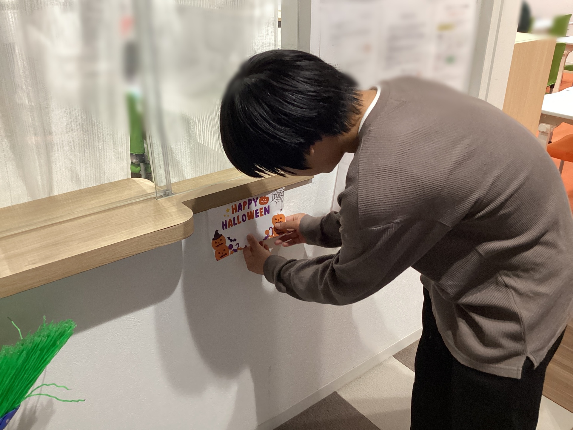 ふと壁を見るとどこかにハロウィンの飾りがあって、