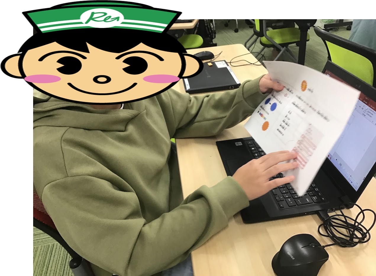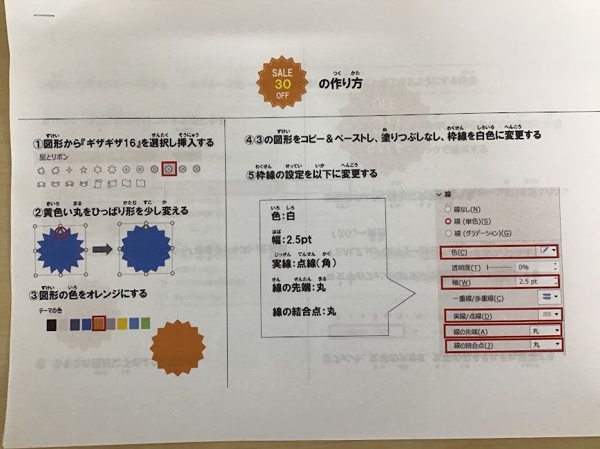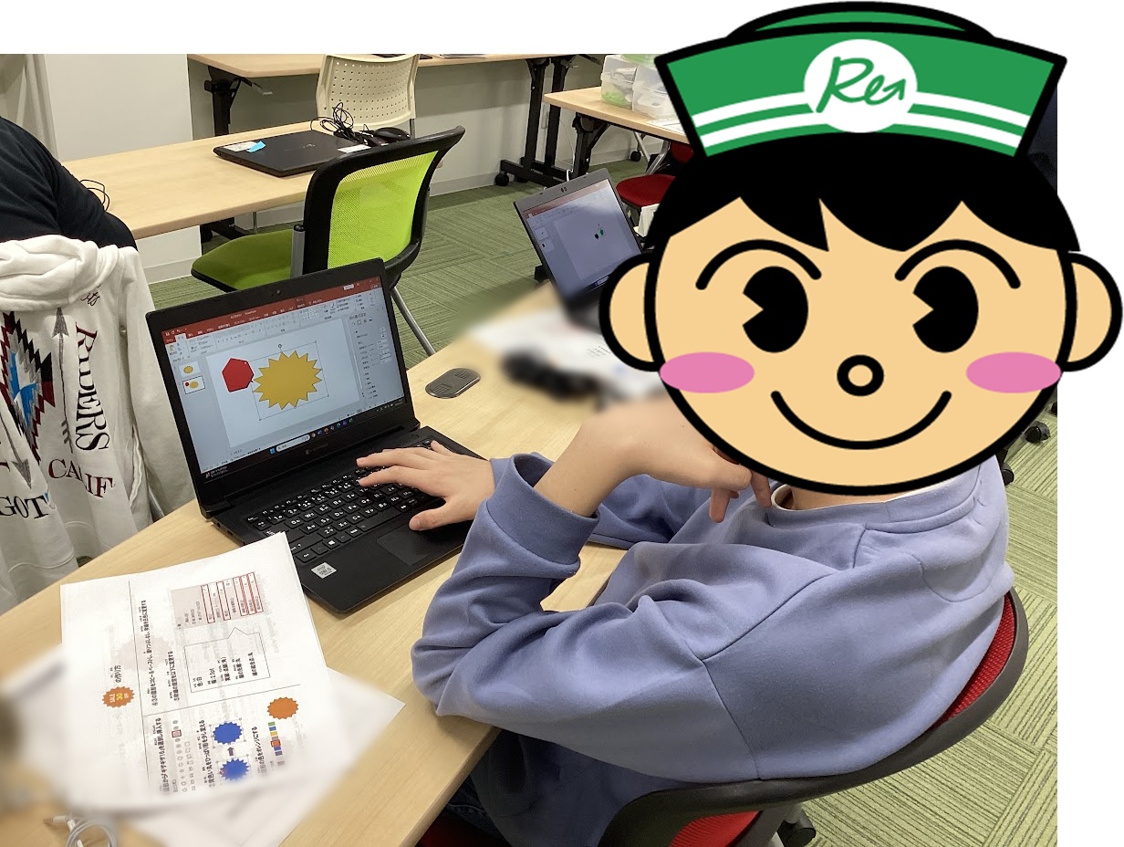 ▼全体で図形の入れ方とグループ化を確認した後、説明書を見ながらポップ作りを進めていただきました💻