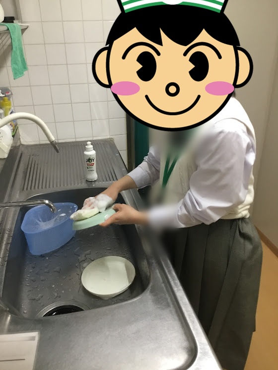 最後は食器洗いも