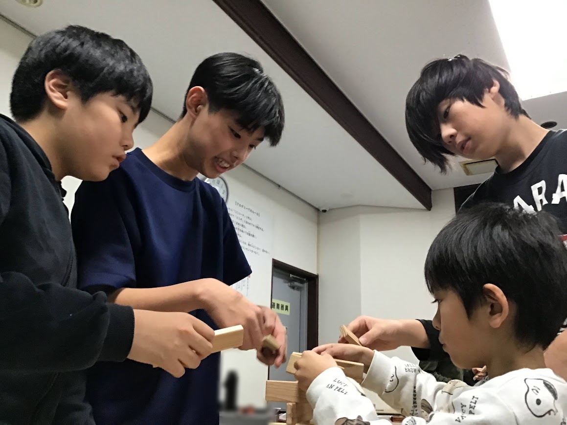 数名でグループになって、定められた時間の中、協力しあい、積み上げていただきました。