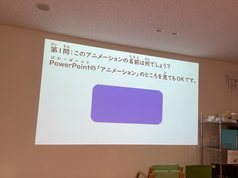 本日のプログラムは「【パソコン】アニメーションクイズ」です。