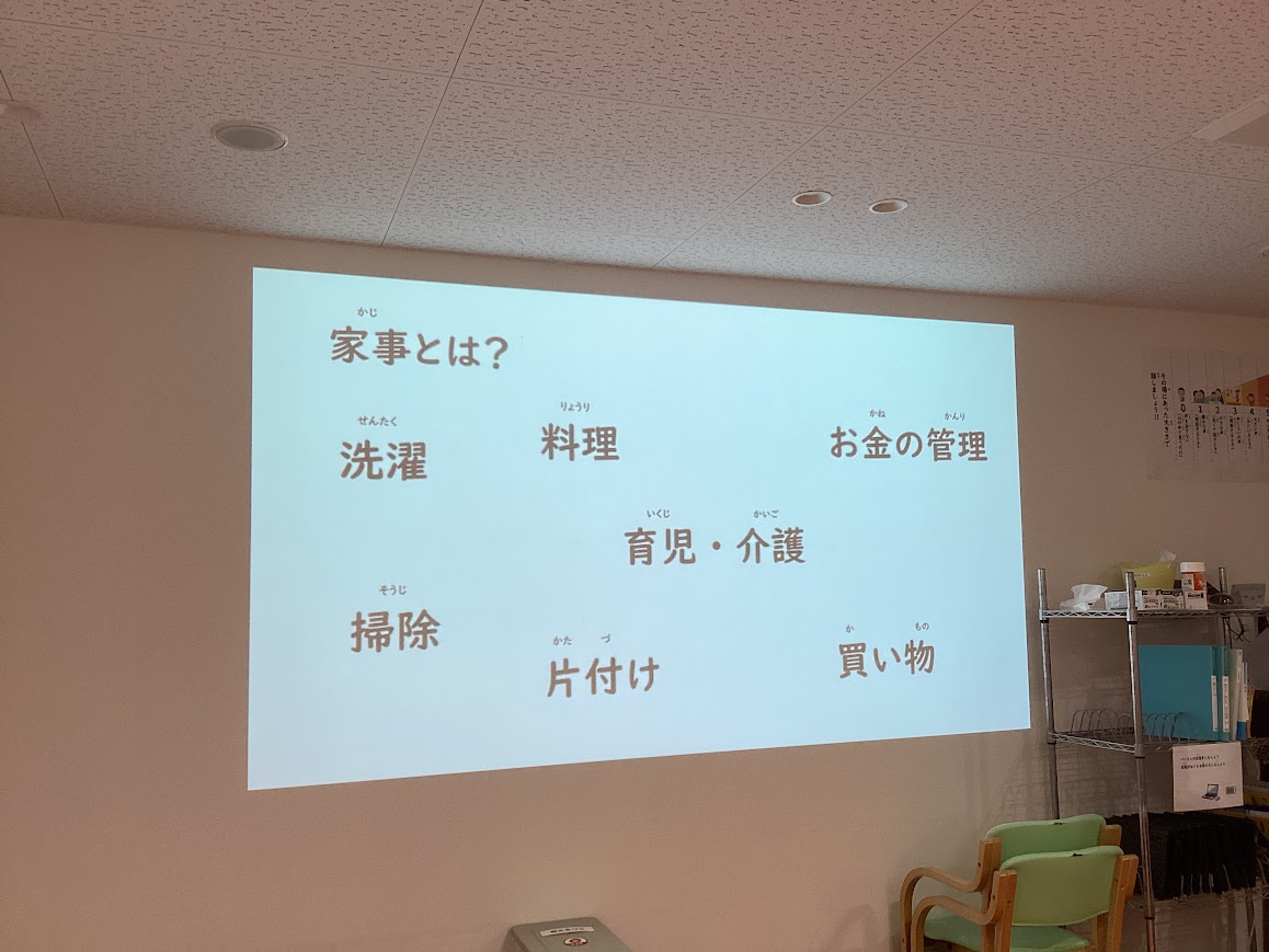 まずは家事の種類を確認した後に、色々な家事で使えるクイズに取り組みました。