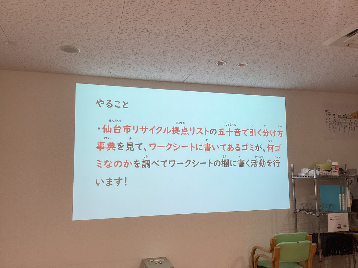 どのゴミが何ゴミにあたるのか自分で調べてワークシートに書いていただきました。