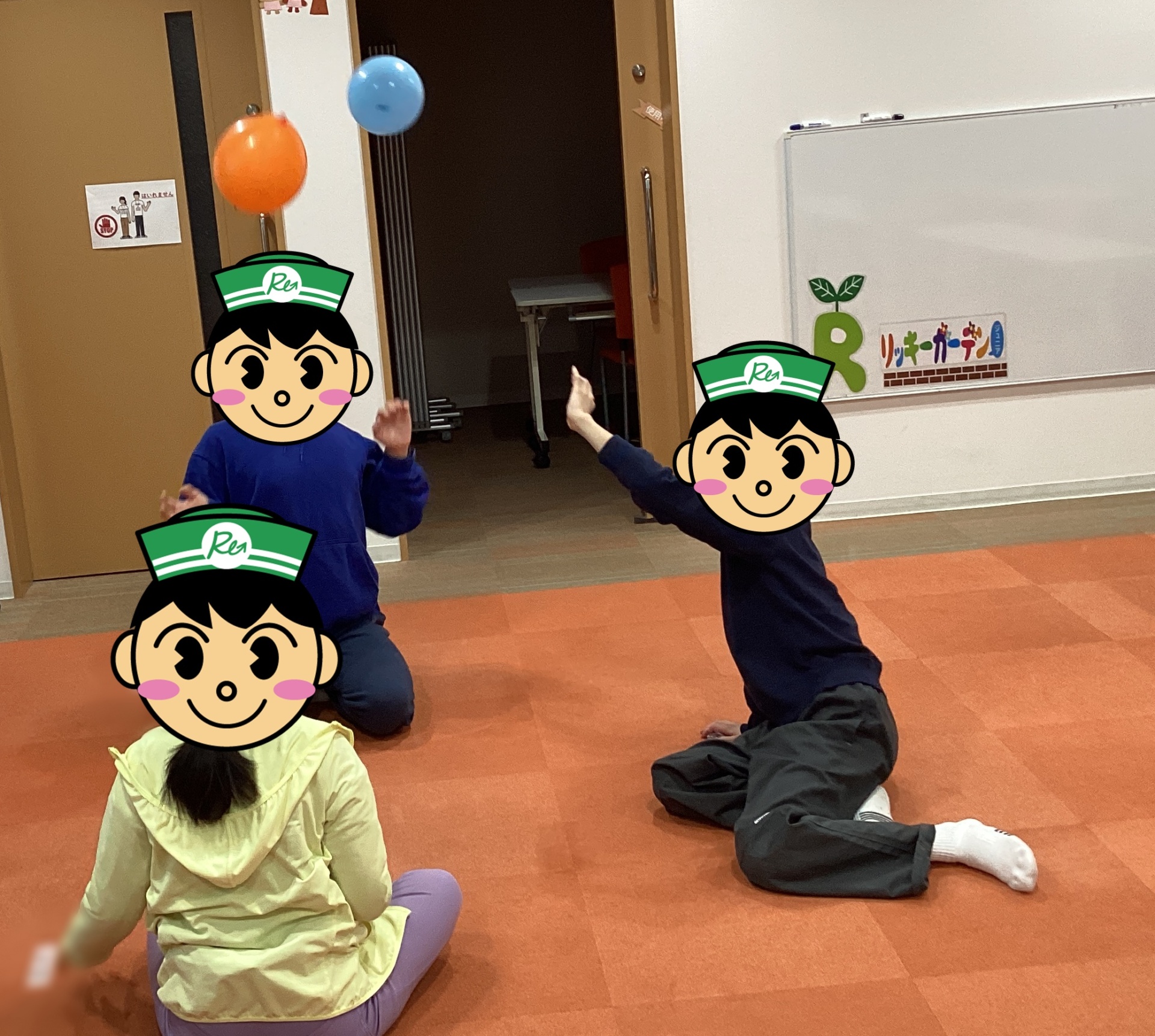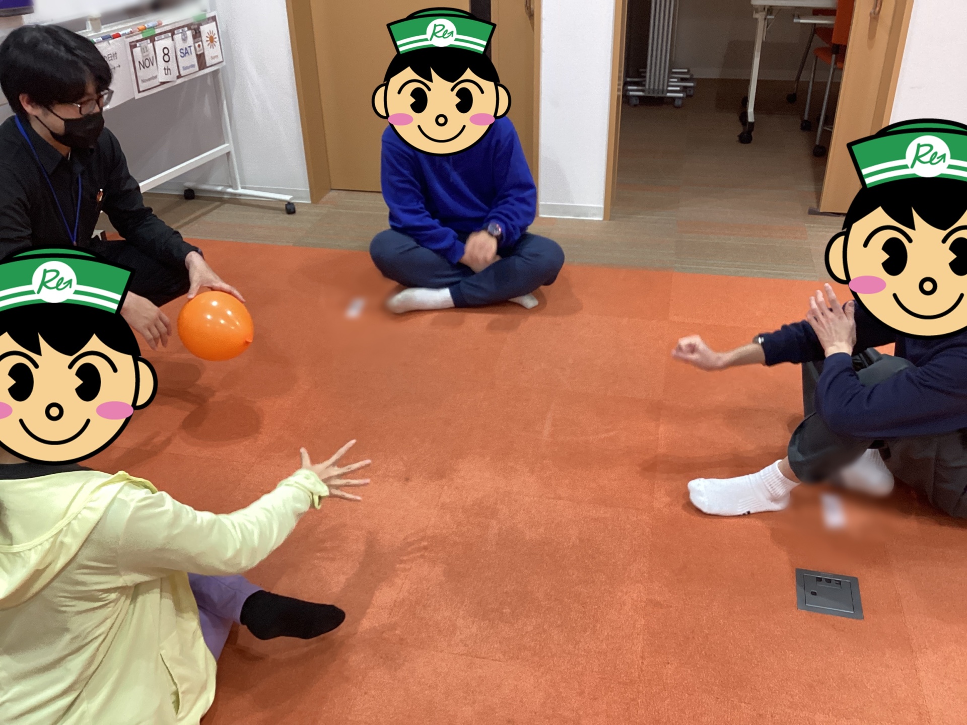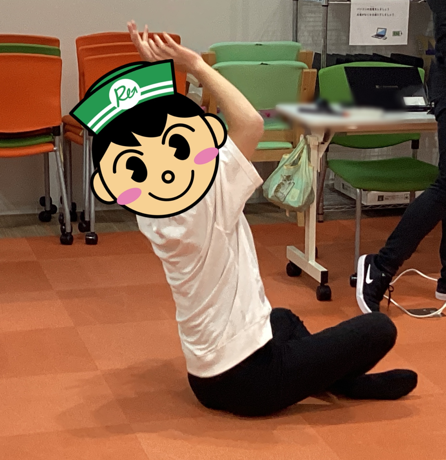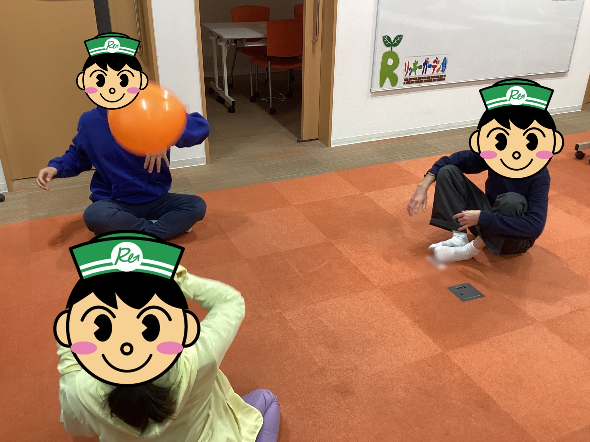 床に座った状態で行い、レシーブ以外はおしりを床から離さないようにします。