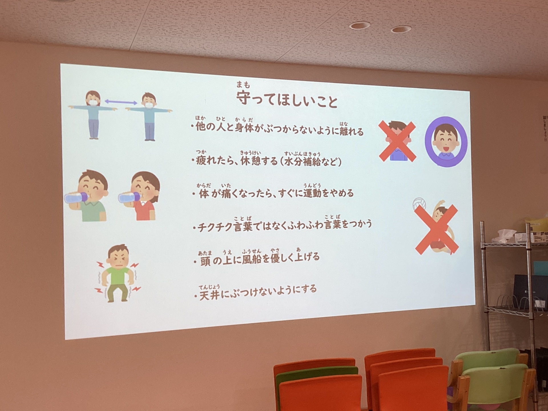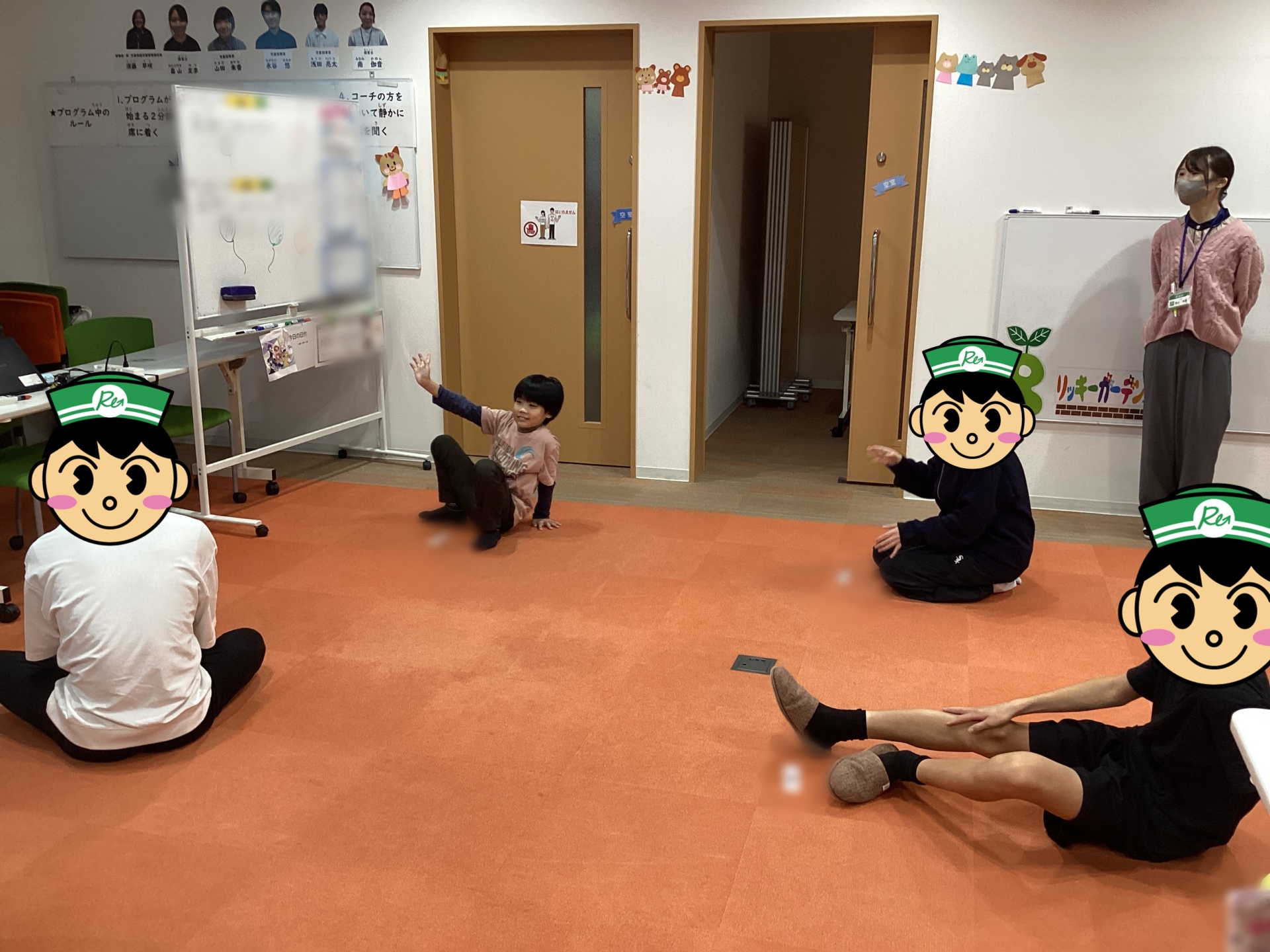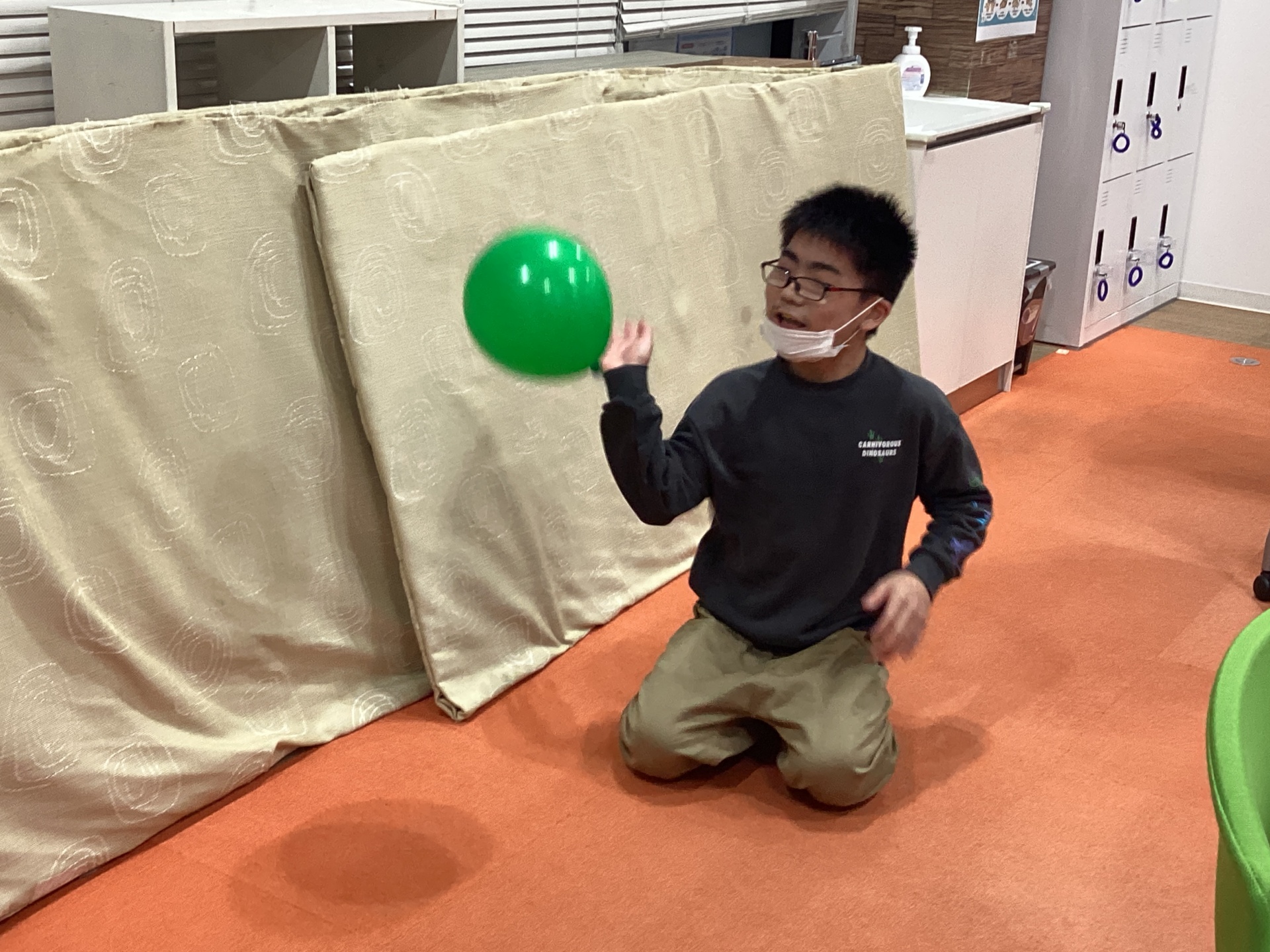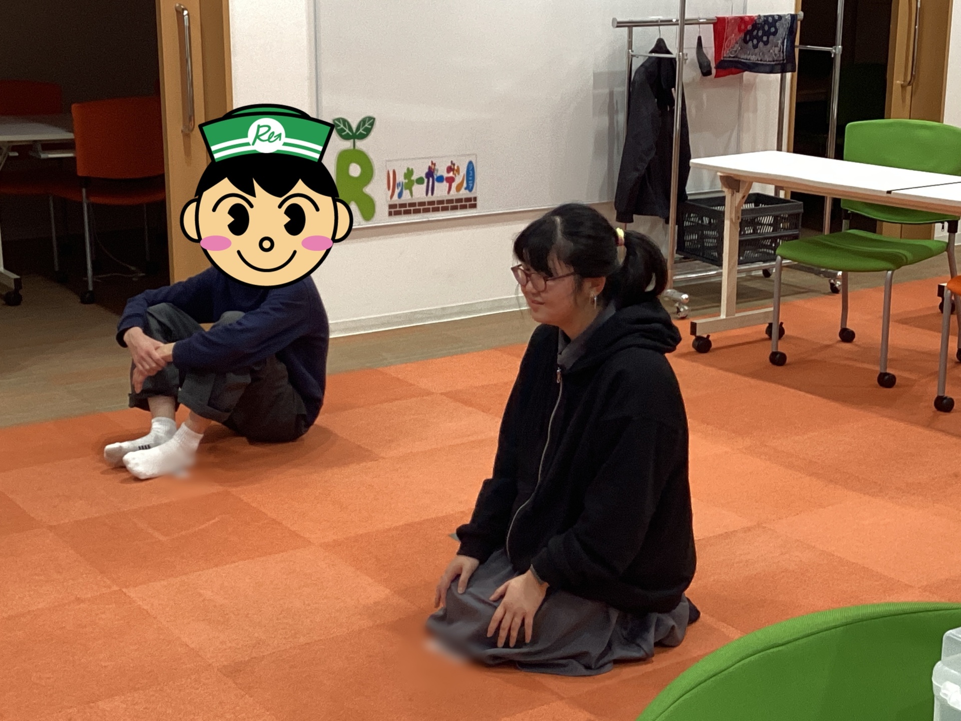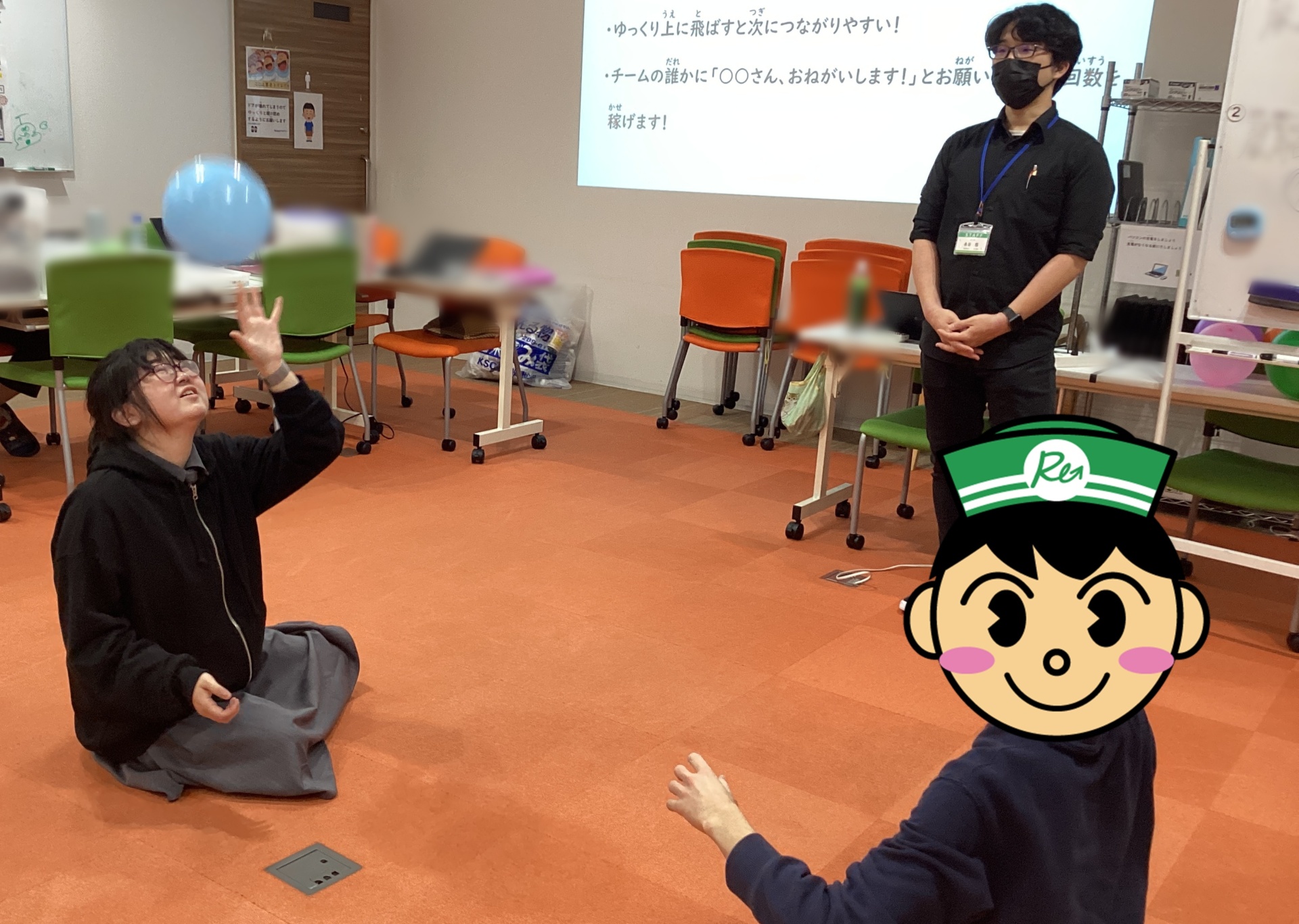 床に座った状態で行い、レシーブ以外はおしりを床から離さないようにします。