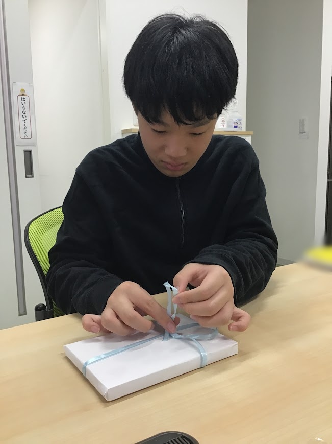 今回は本を『風呂敷包み』という包み方で包んでいただき、リボンも結んでいただきました🎀