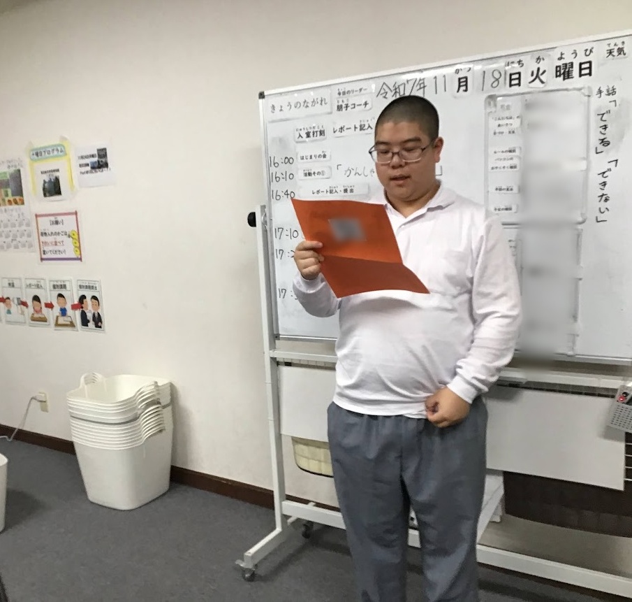 完成後は、みんなの前で 家族への感謝の気持ち を発表してくれました。