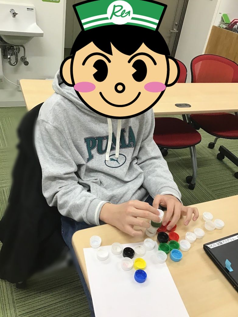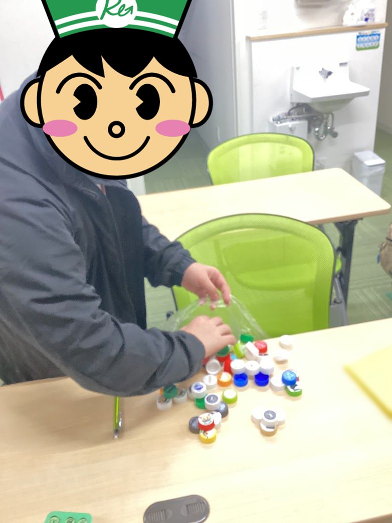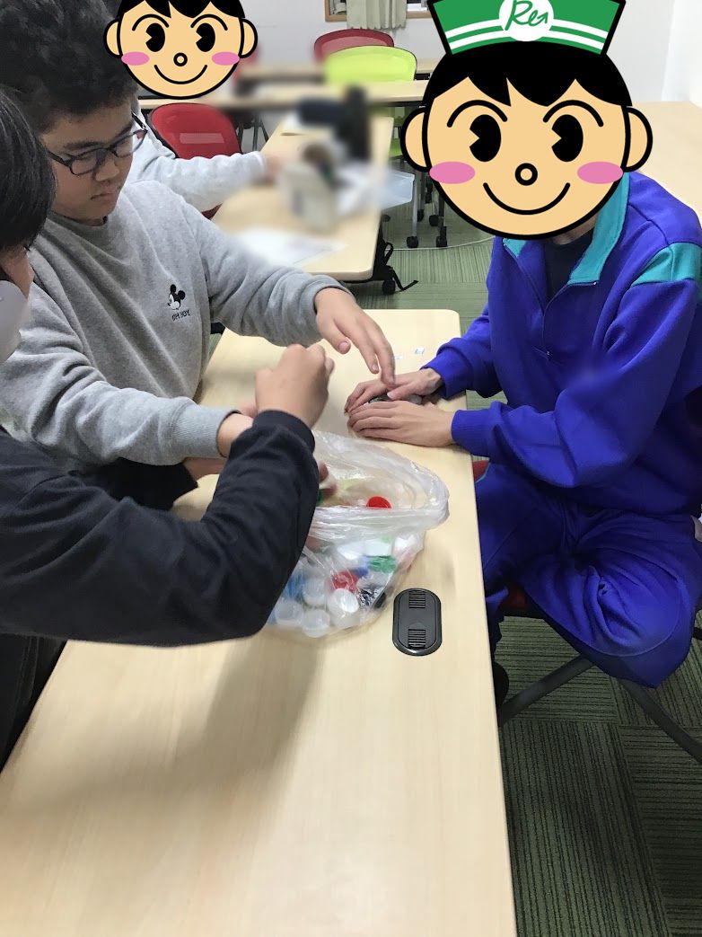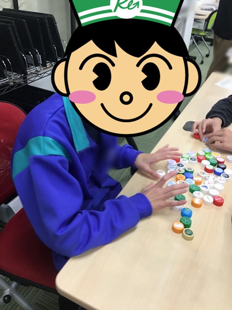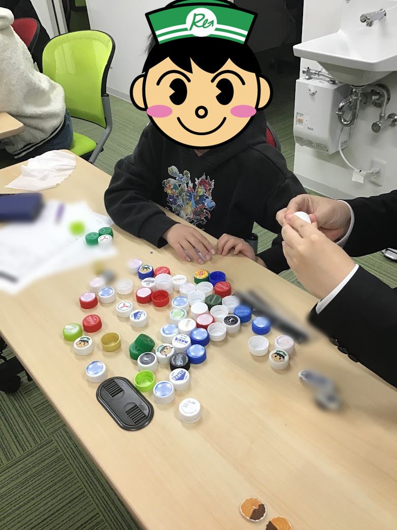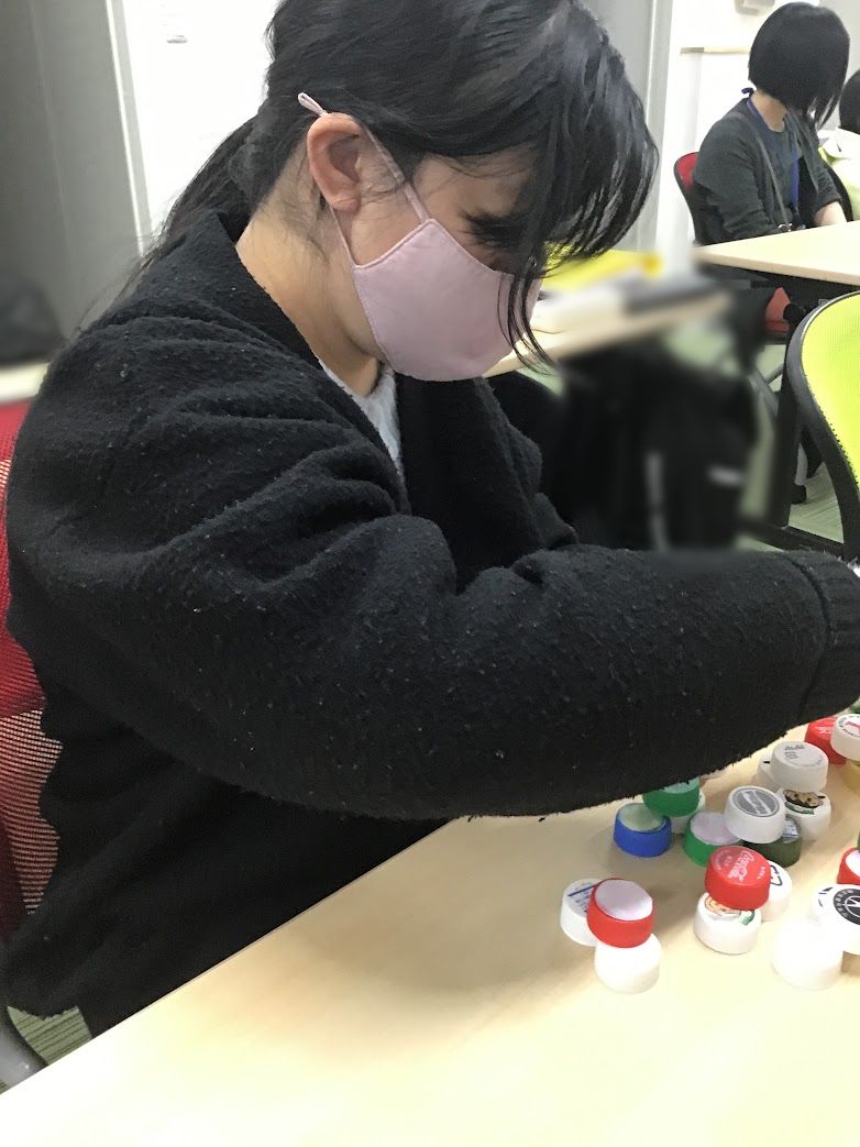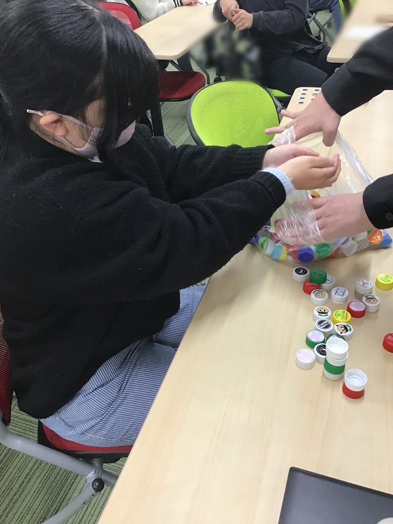 ペットボトルキャップを制限時間内になるべく高く積み上げていただきました!