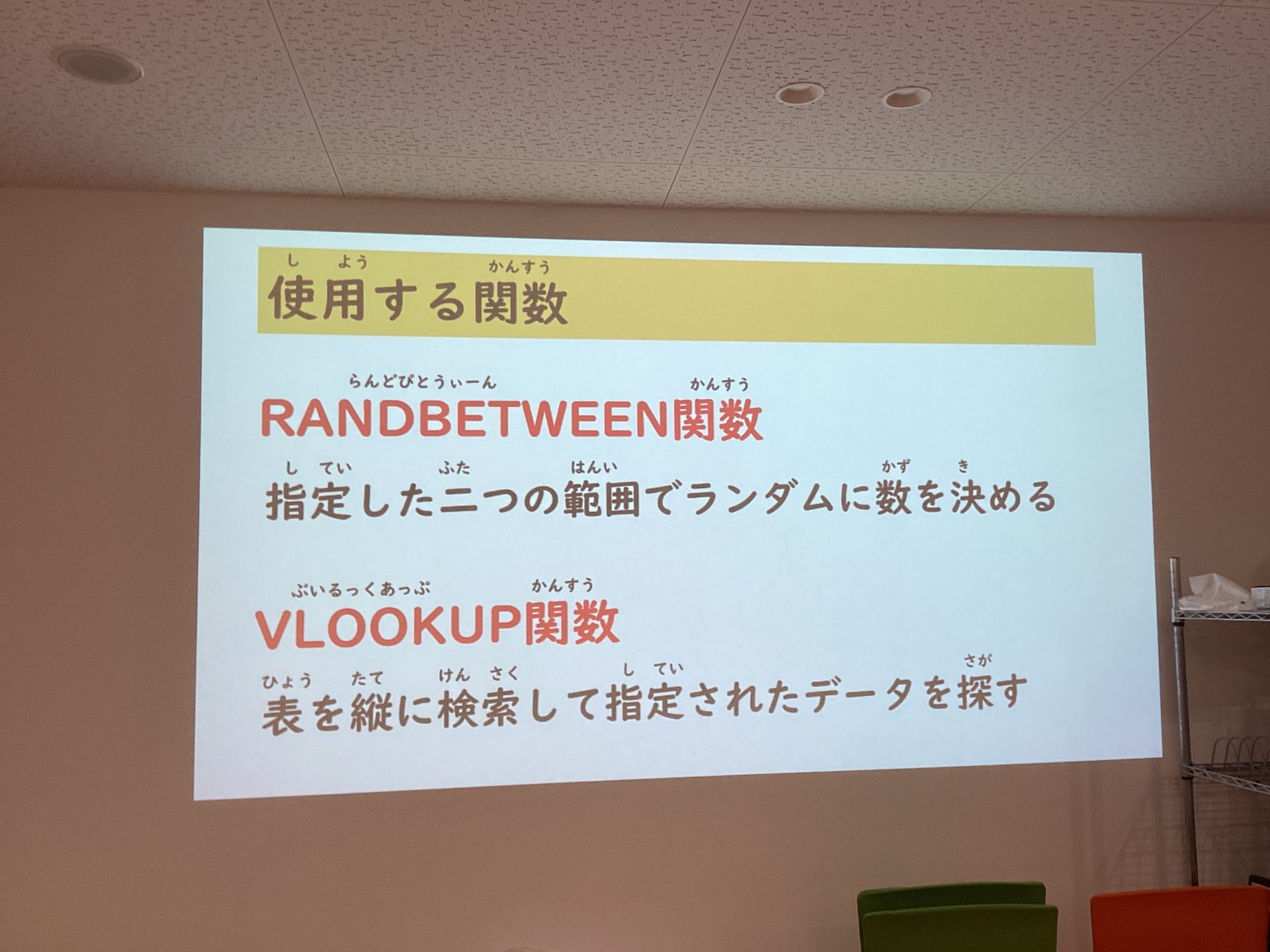 「RANDBETWEEN」や「VLOOKUP」など普段は使わない関数に悪戦苦闘しながらも頑張りました。