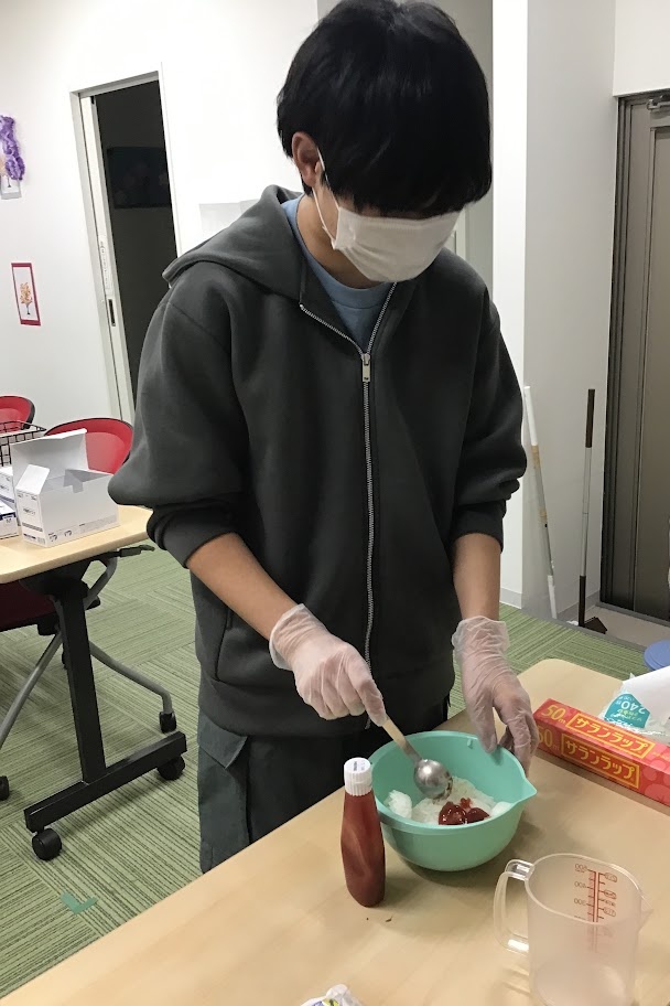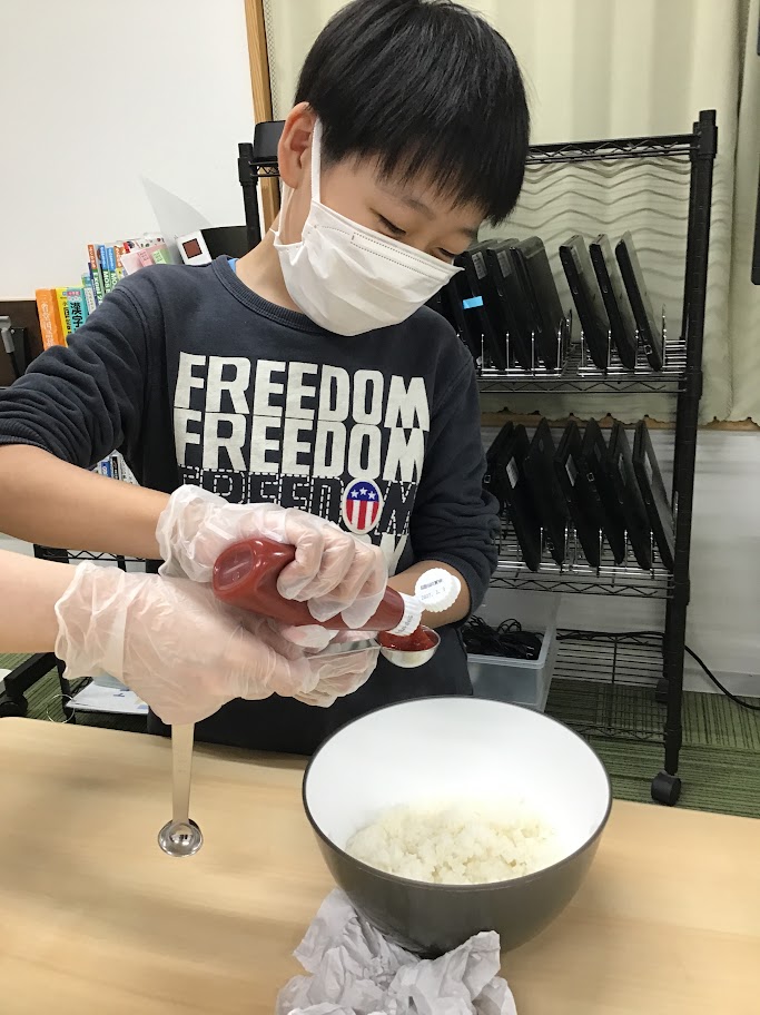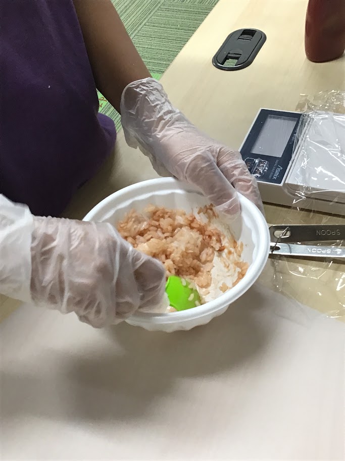 ライスボールに必要なご飯とケチャップも分量をはかって、