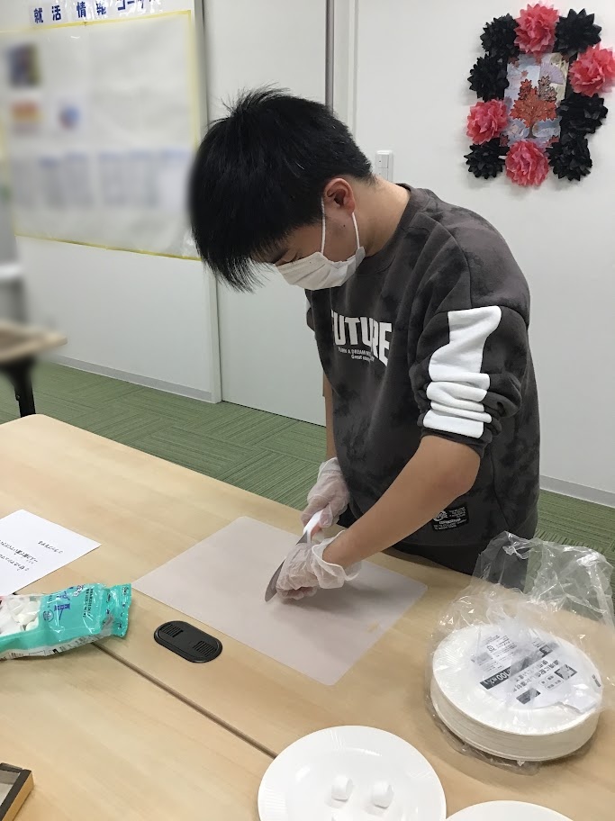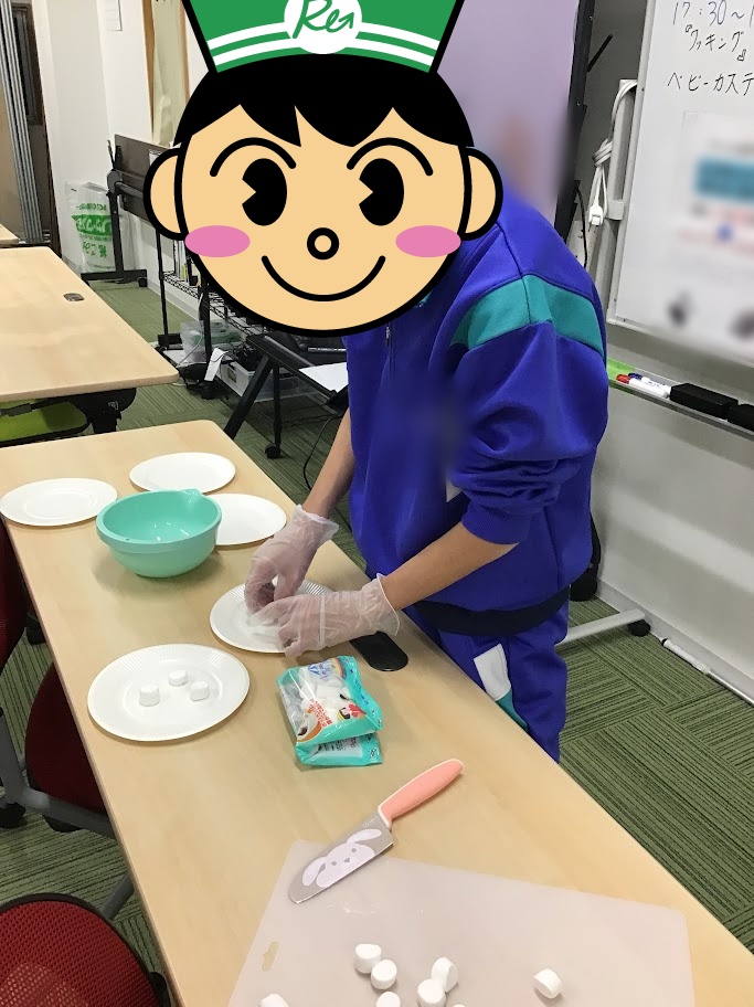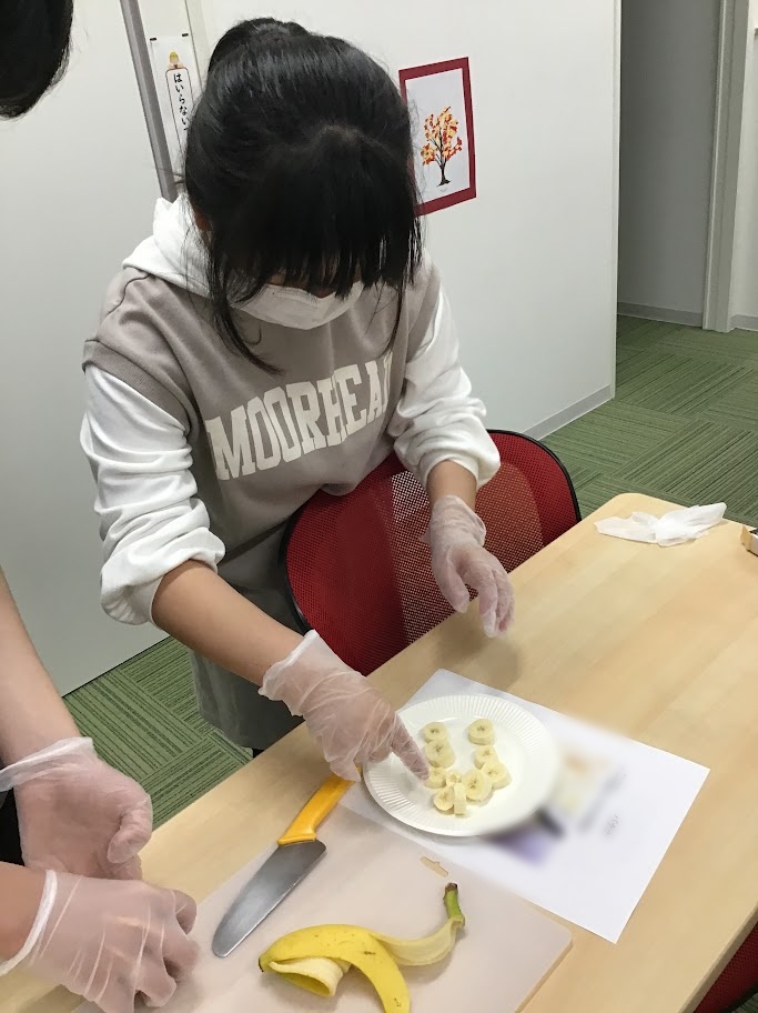 バナナ、マシュマロを決められた大きさで切っていただいたり、