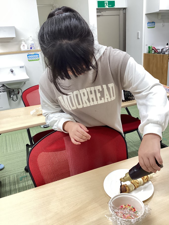 お好みでチョコソースとカラースプレーで、デコレーションをしたら完成✨️