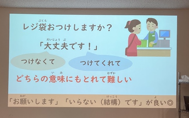 例えば、コンビニで「レジ袋おつけしますか?」と店員さんに確認された時。
