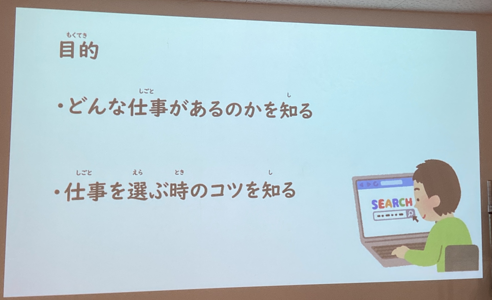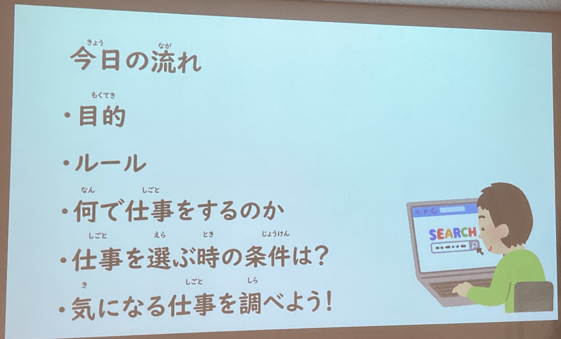 今回は将来必ず就く仕事を調べるのではなく、仕事の調べ方を学びました。