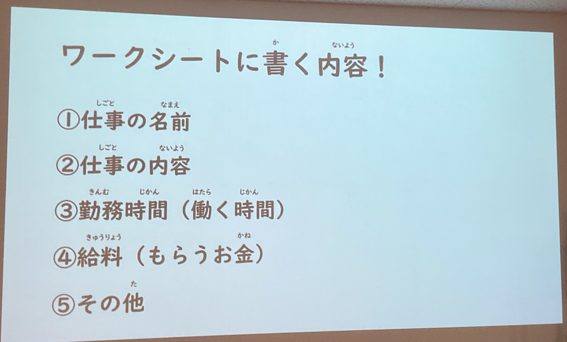 ここからは仕事の条件や職業名でワークシートに職業について調べてまとめました。