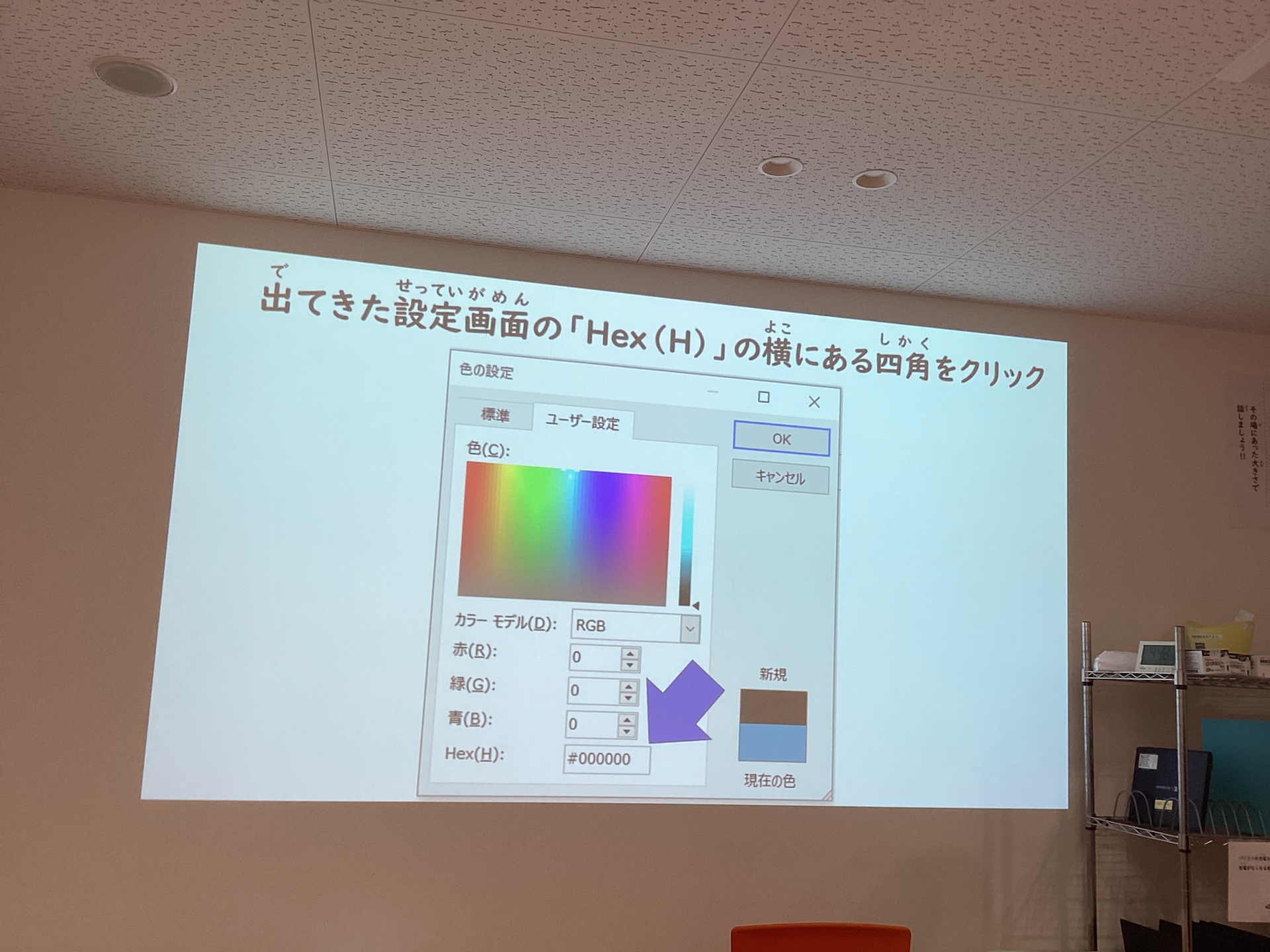 この、矢印の所にカラーコードを打ち込むといいのですね!