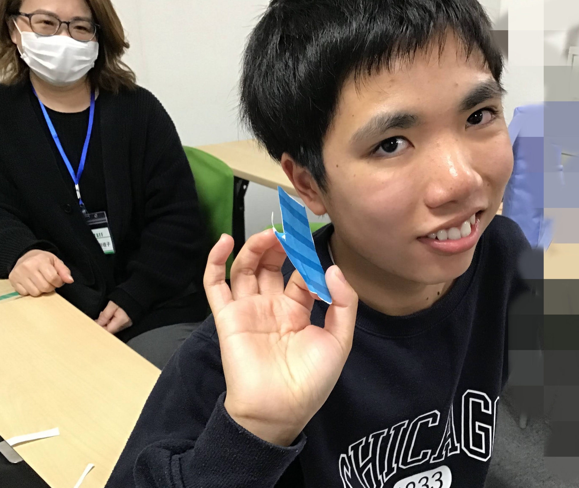 「ていねいに切る」を目標に、ハサミの使い方・巧緻性のトレーニングを行っていただきました。