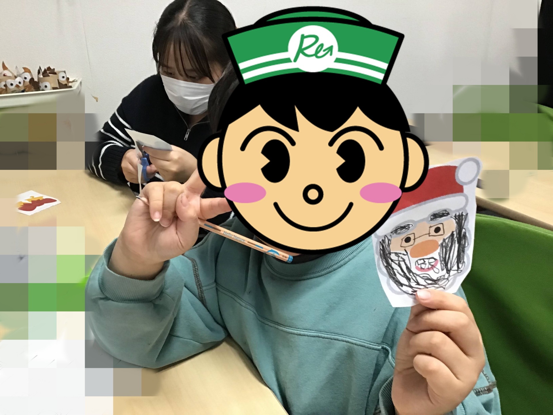 サンタに顔を描きました?