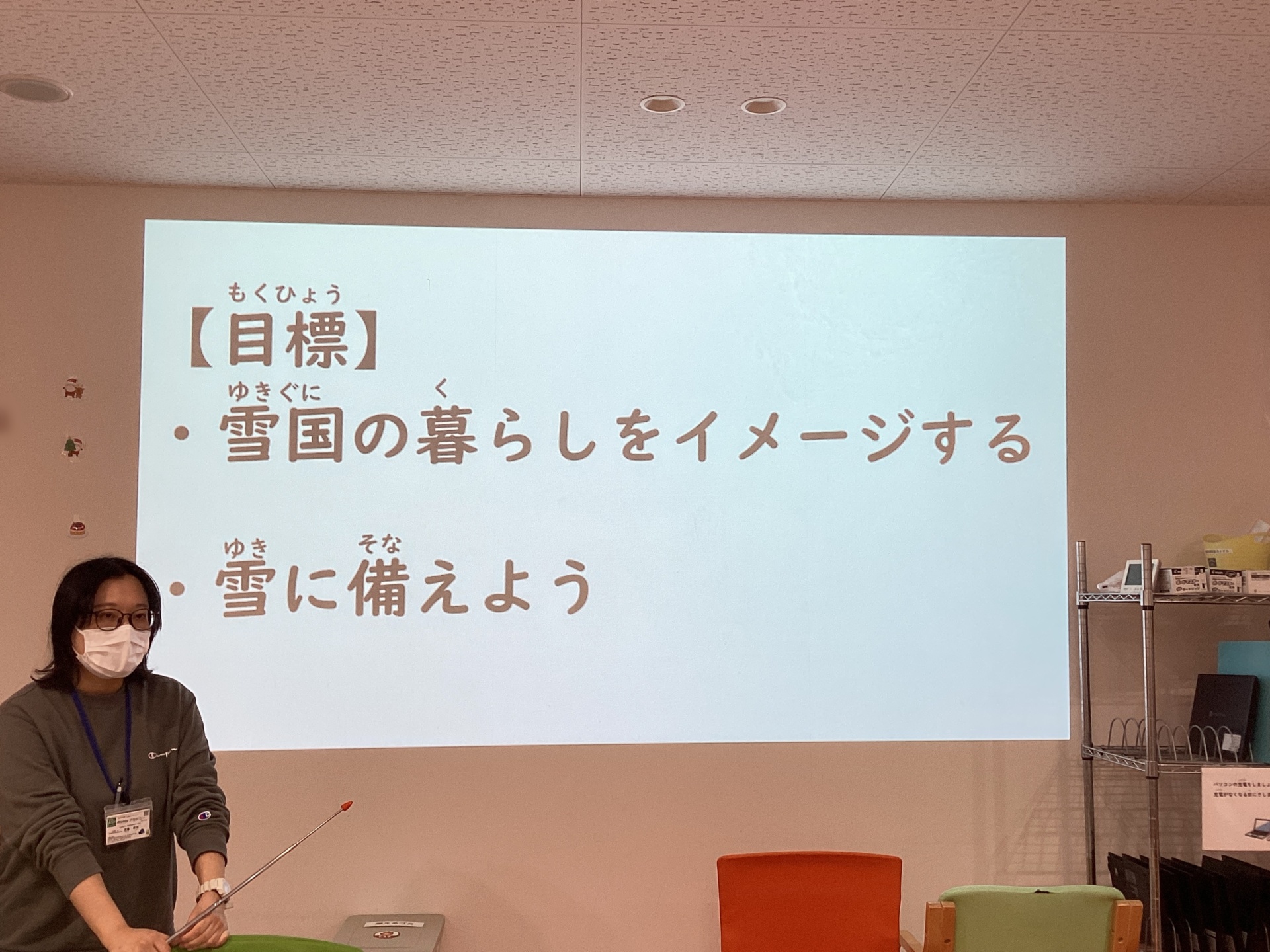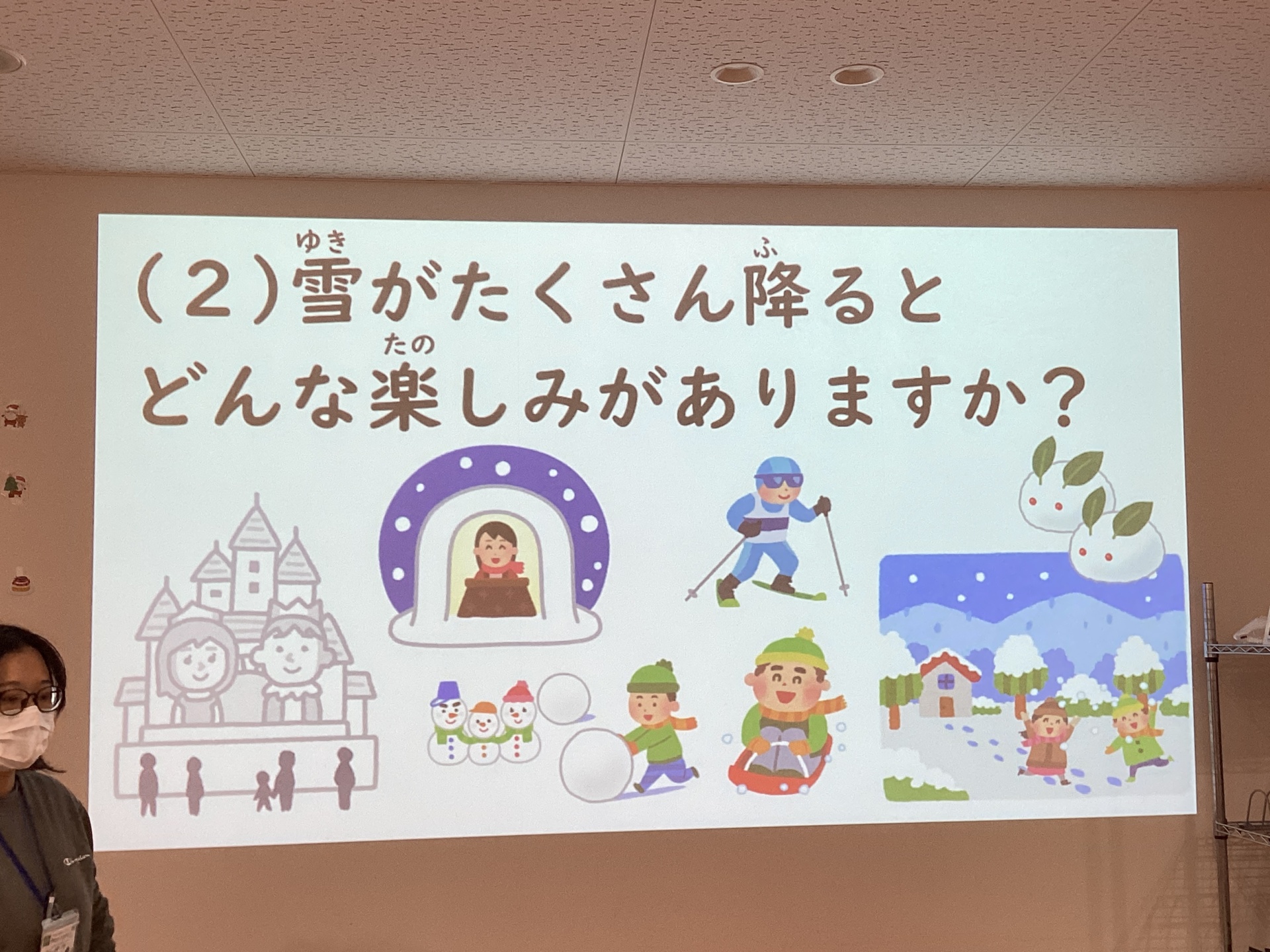 次に雪がたくさん降るとできる楽しいことを考え、答えました。