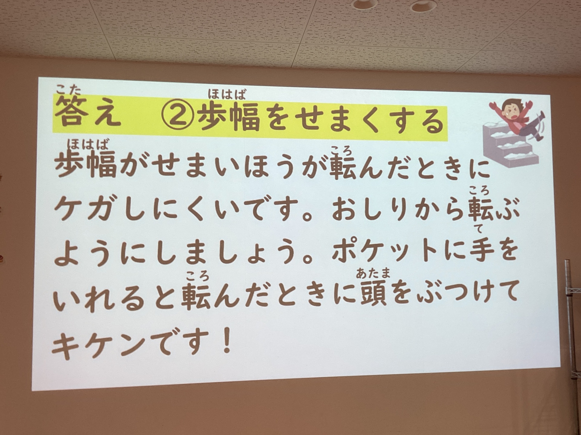 ここからは雪が降った時に潜む危険を回避する方法をクイズで学びました。