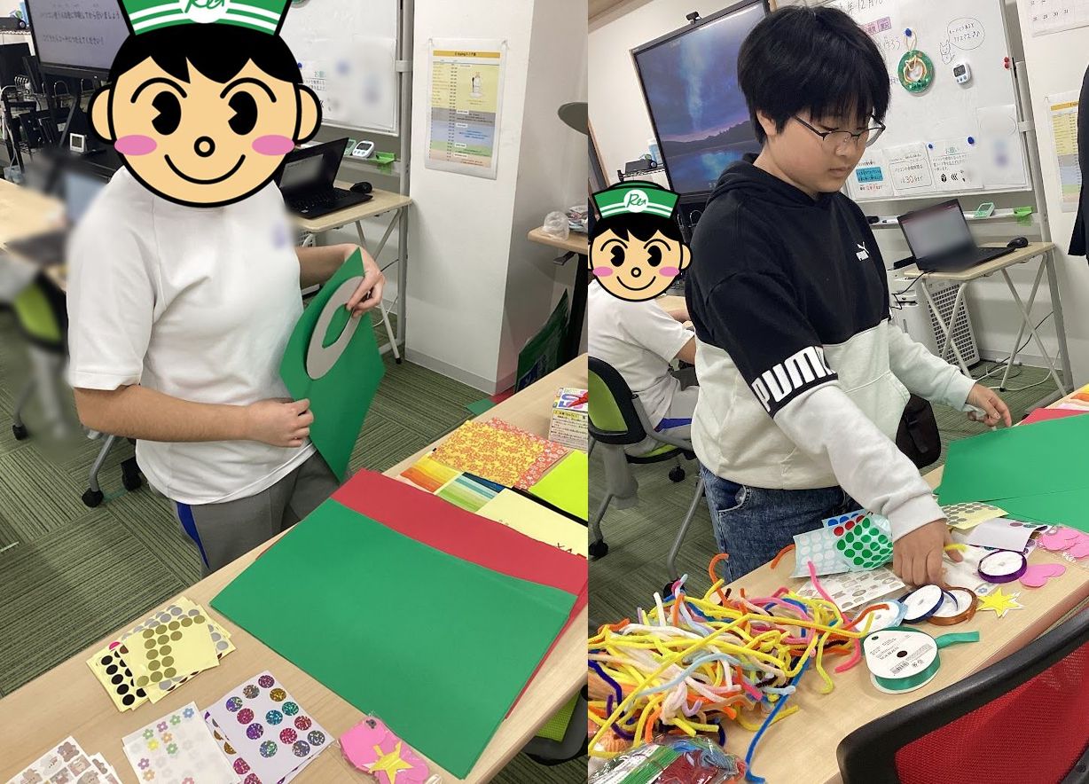 画用紙や毛糸、シールなどを使って華やかにしていきました!