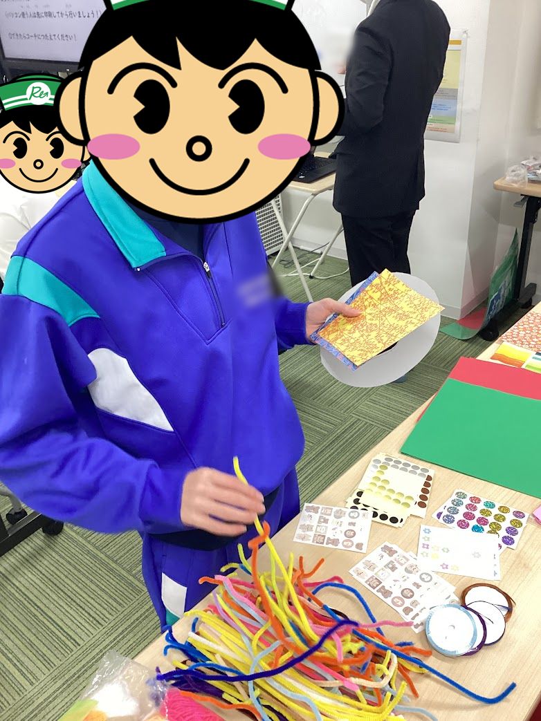画用紙や毛糸、シールなどを使って華やかにしていきました!