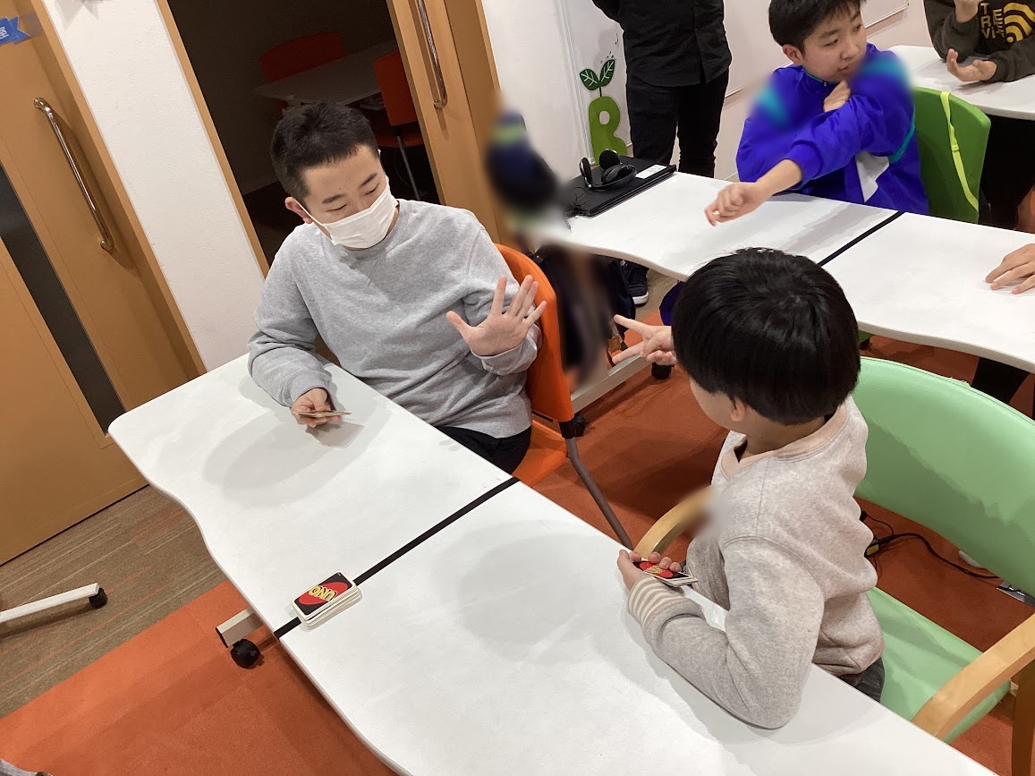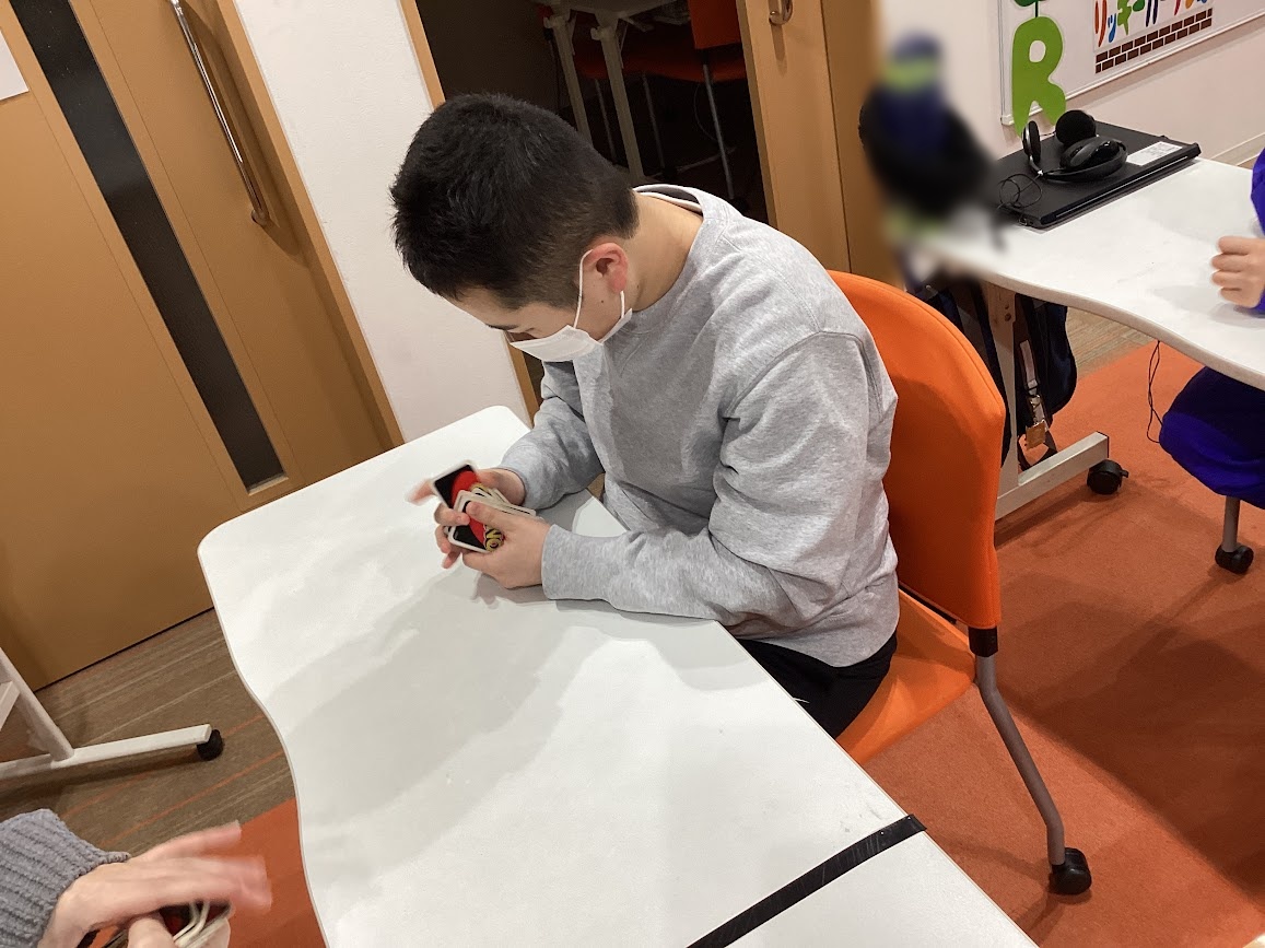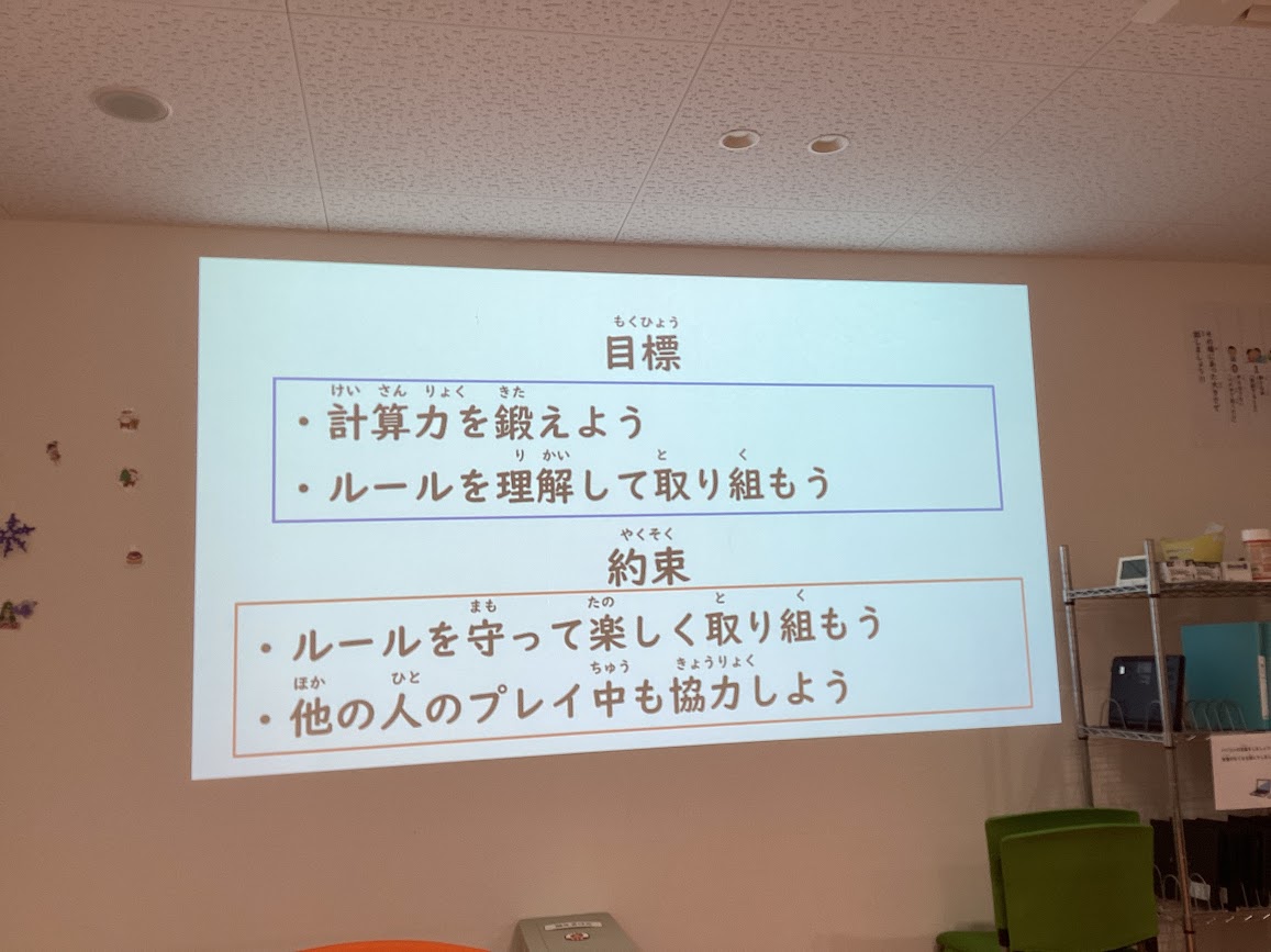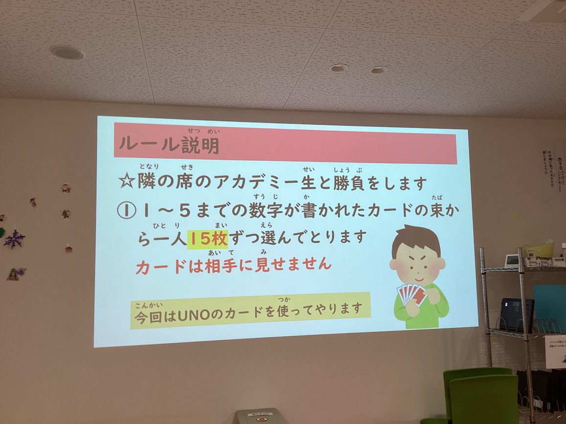 数字の書かれたカードを足し算して「10」の数字を見つけていくゲームを行いました。