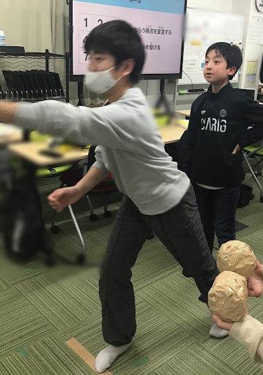 投げ方・ルールを確認したらゲームに取り組みました(*’▽’)