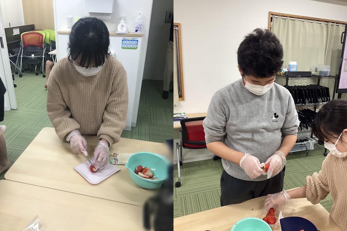 【ホイップ】【生地作り】【いちご】【ハム&チーズ】の4つの担当に分かれていただきました。