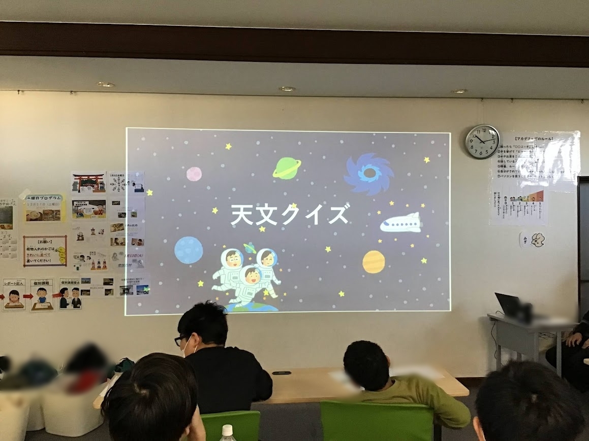午前は天文に関するクイズに挑戦! 予習してプラネタリウムに臨みました!