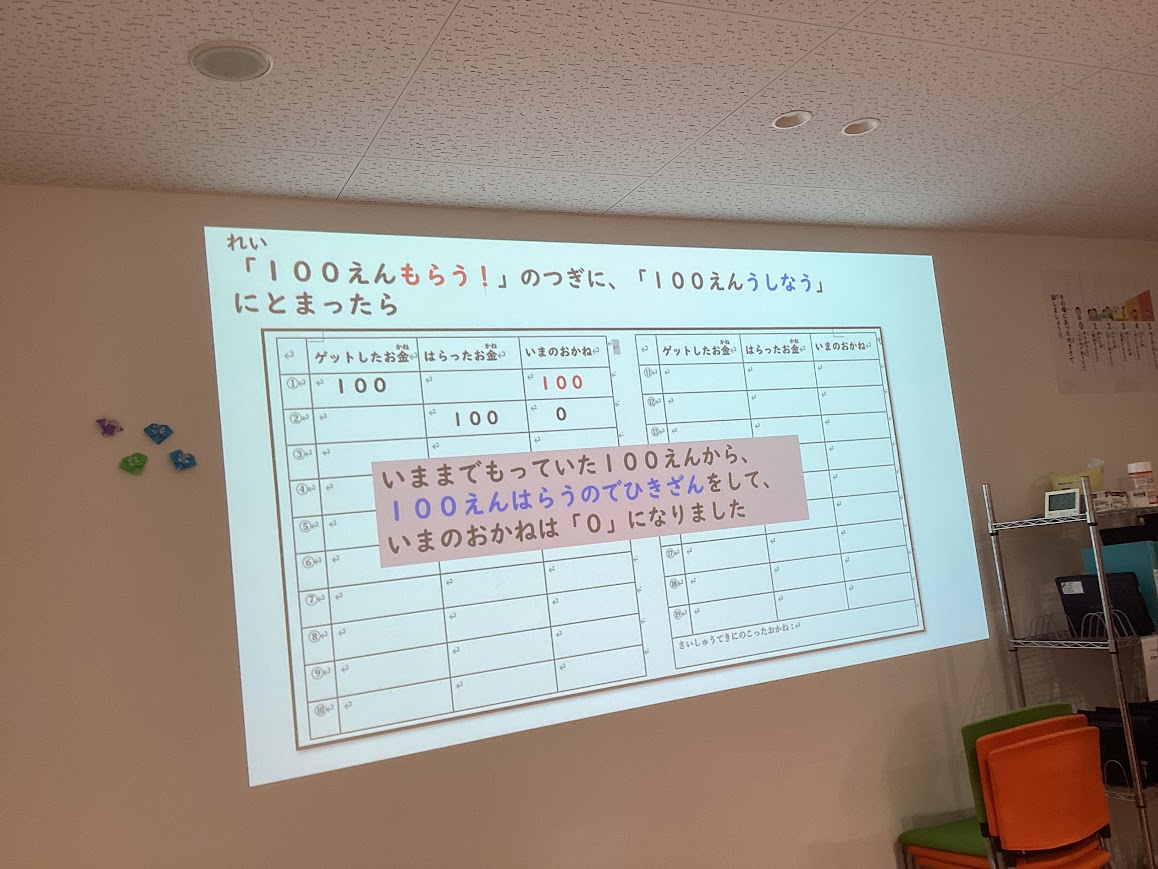 すごろくが終わったら、すごろくでゲットしたお金が高い順でジュースやお菓子を選んで楽しみました。