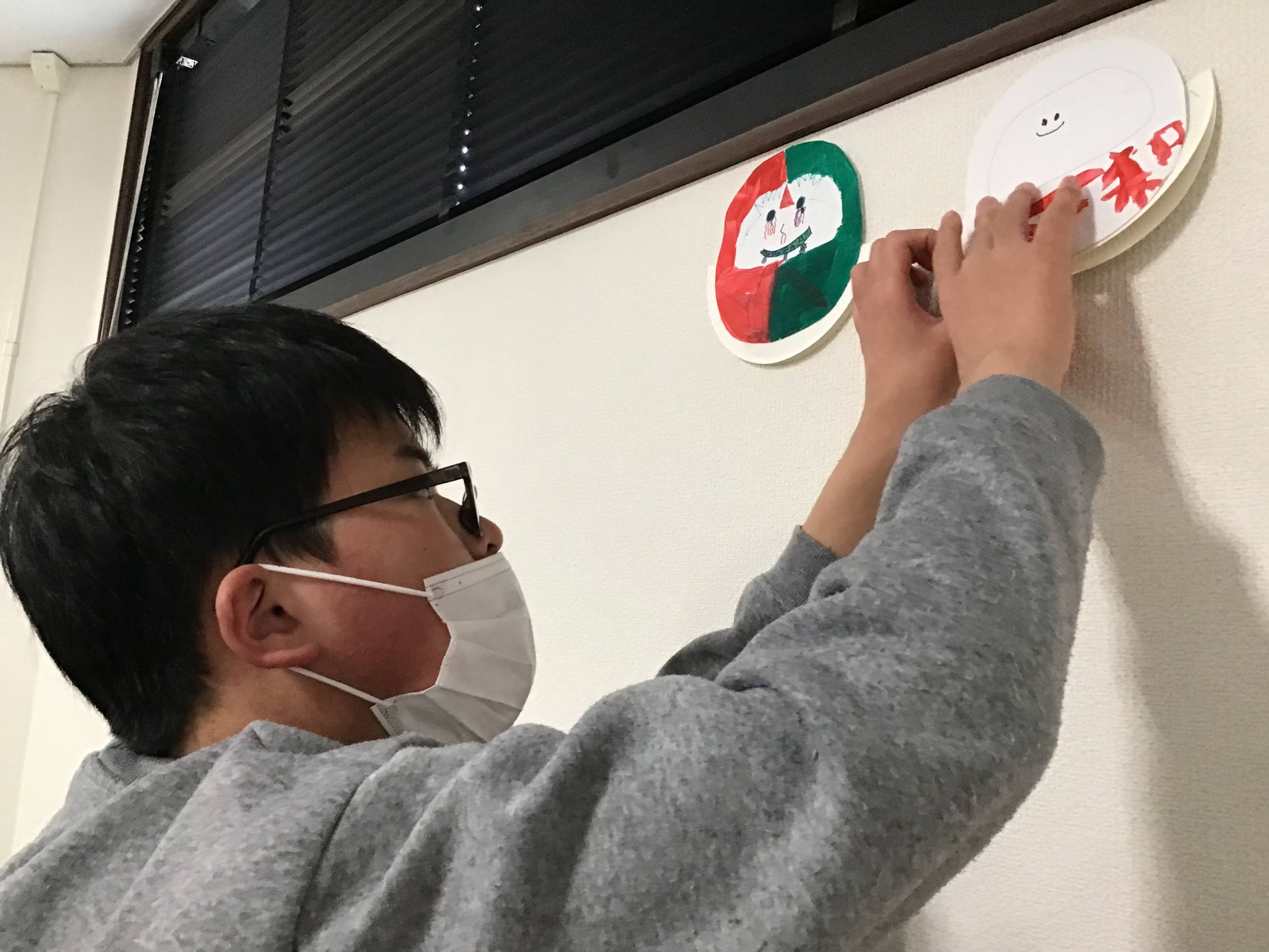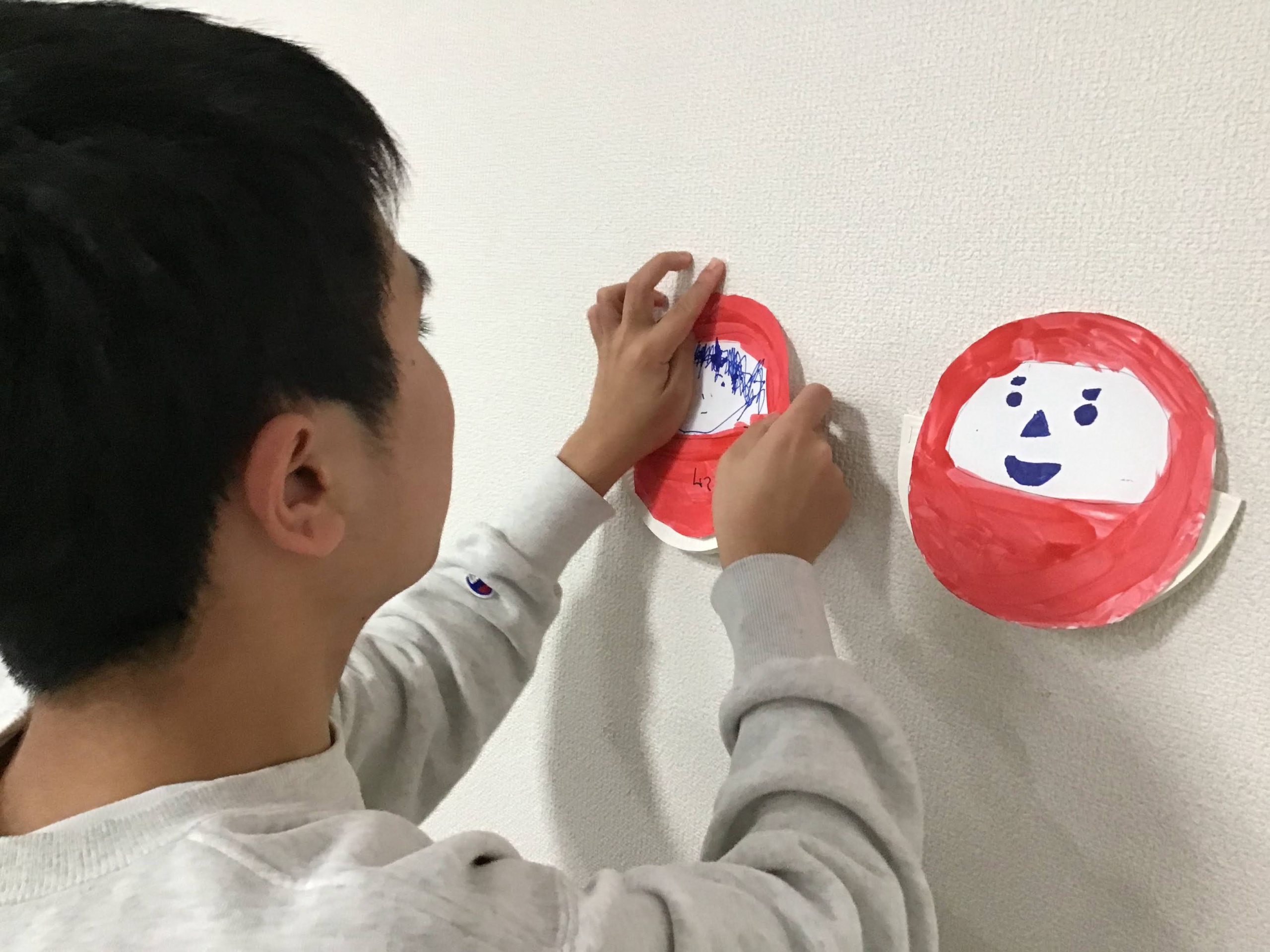 お正月に縁起の良いだるまを、みなさんで工作しました。ゆらゆら揺れるだるまで、顔の表情は自由に表現していただきました。さて、どんなだるまができたでしょうか?