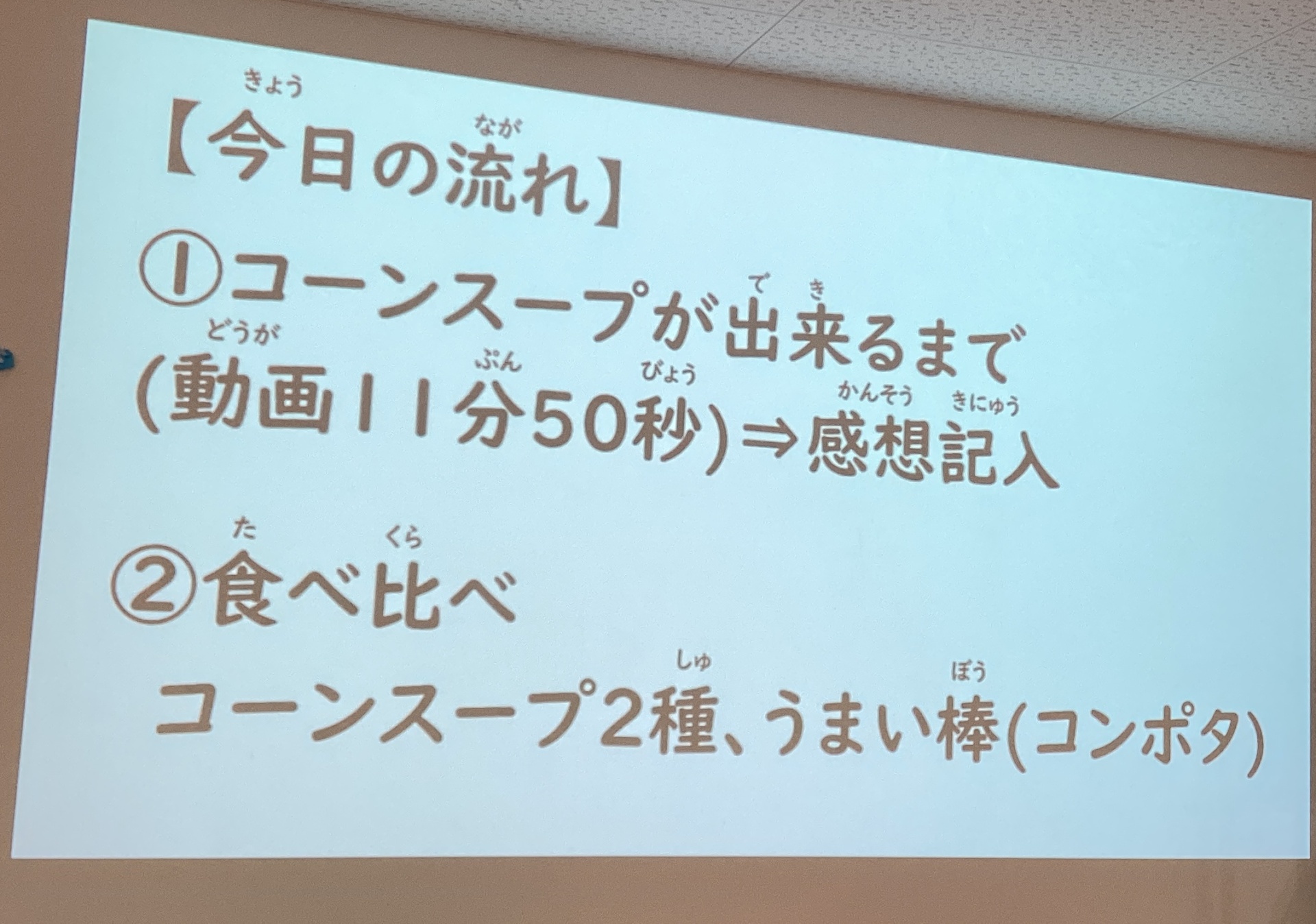 今日はコーンスープの作られ方を動画で学んだ後に色々なコーンスープを食べ比べてみました。