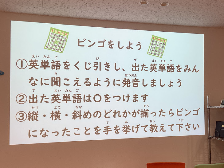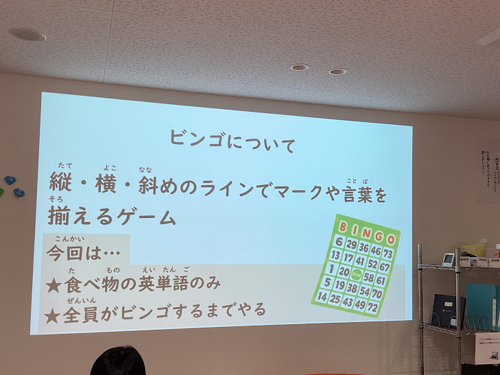 ビンゴについて、知っている人も沢山いましたが、どういったものなのか全体で確認をします。
