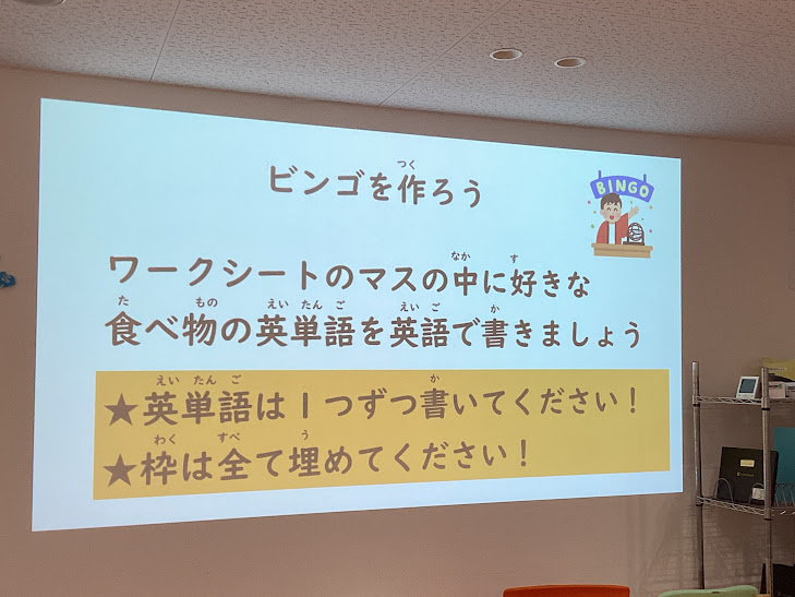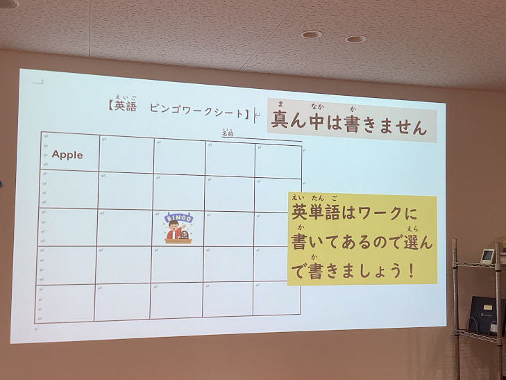 ビンゴについて、知っている人も沢山いましたが、どういったものなのか全体で確認をします。