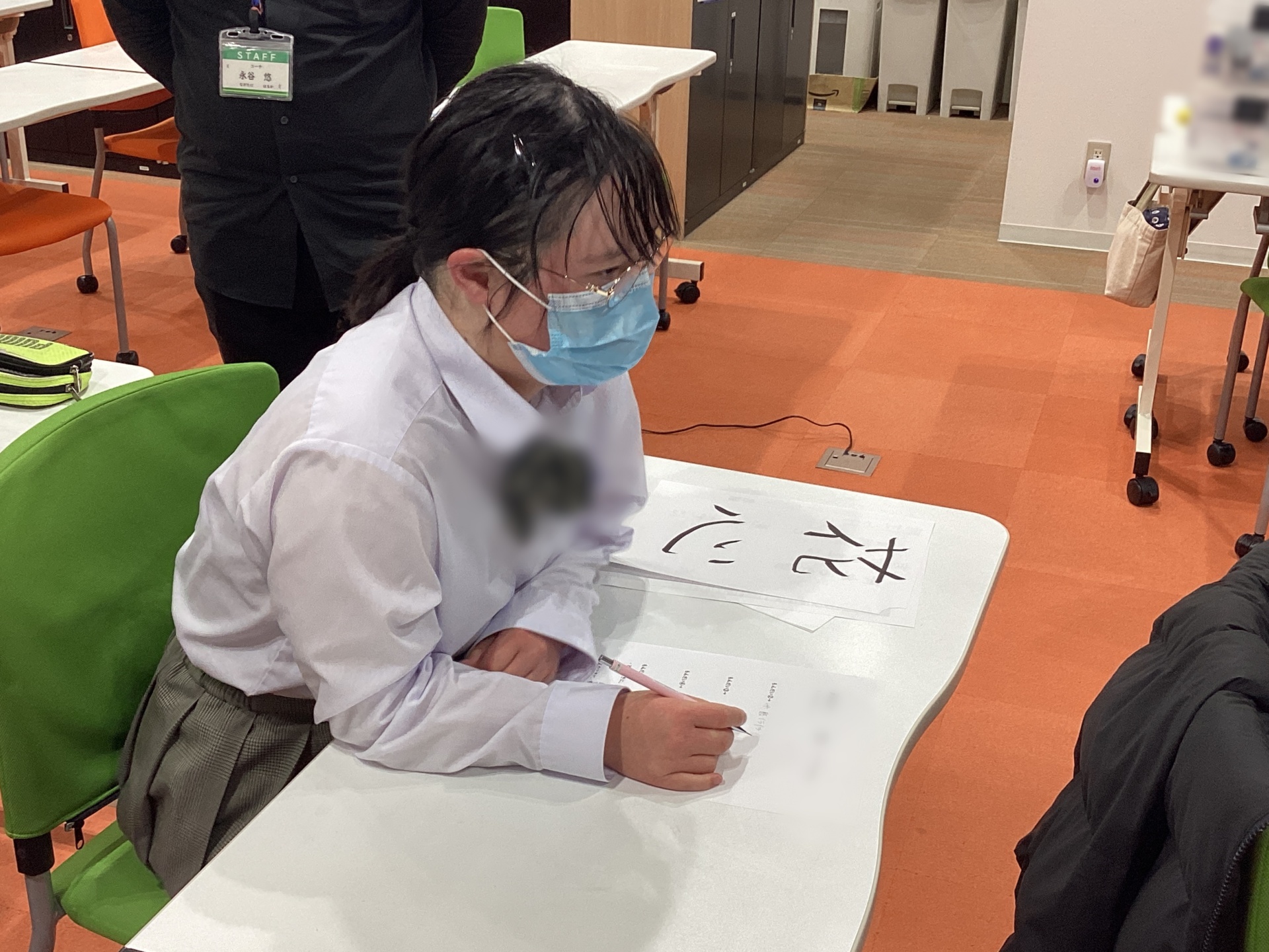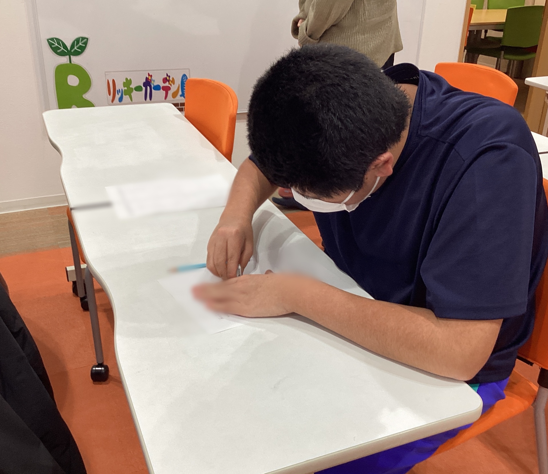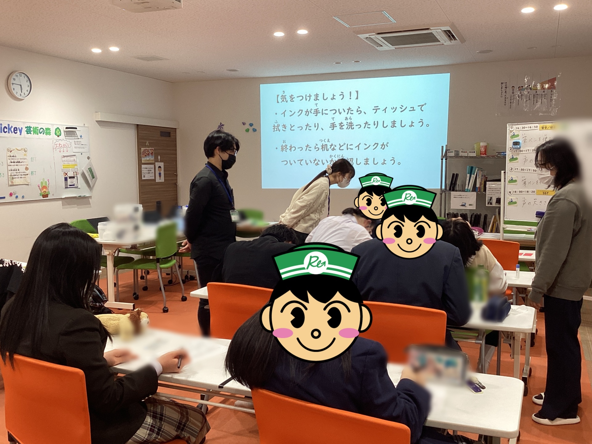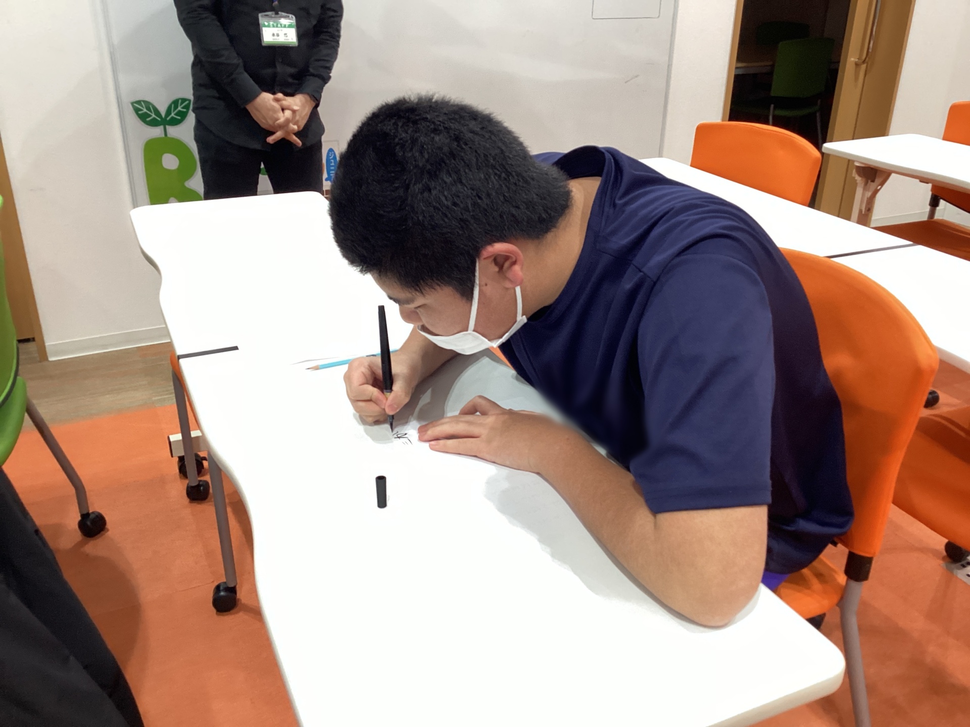 しおりサイズの画用紙に、思い思いに筆ペンでアートをすることで
