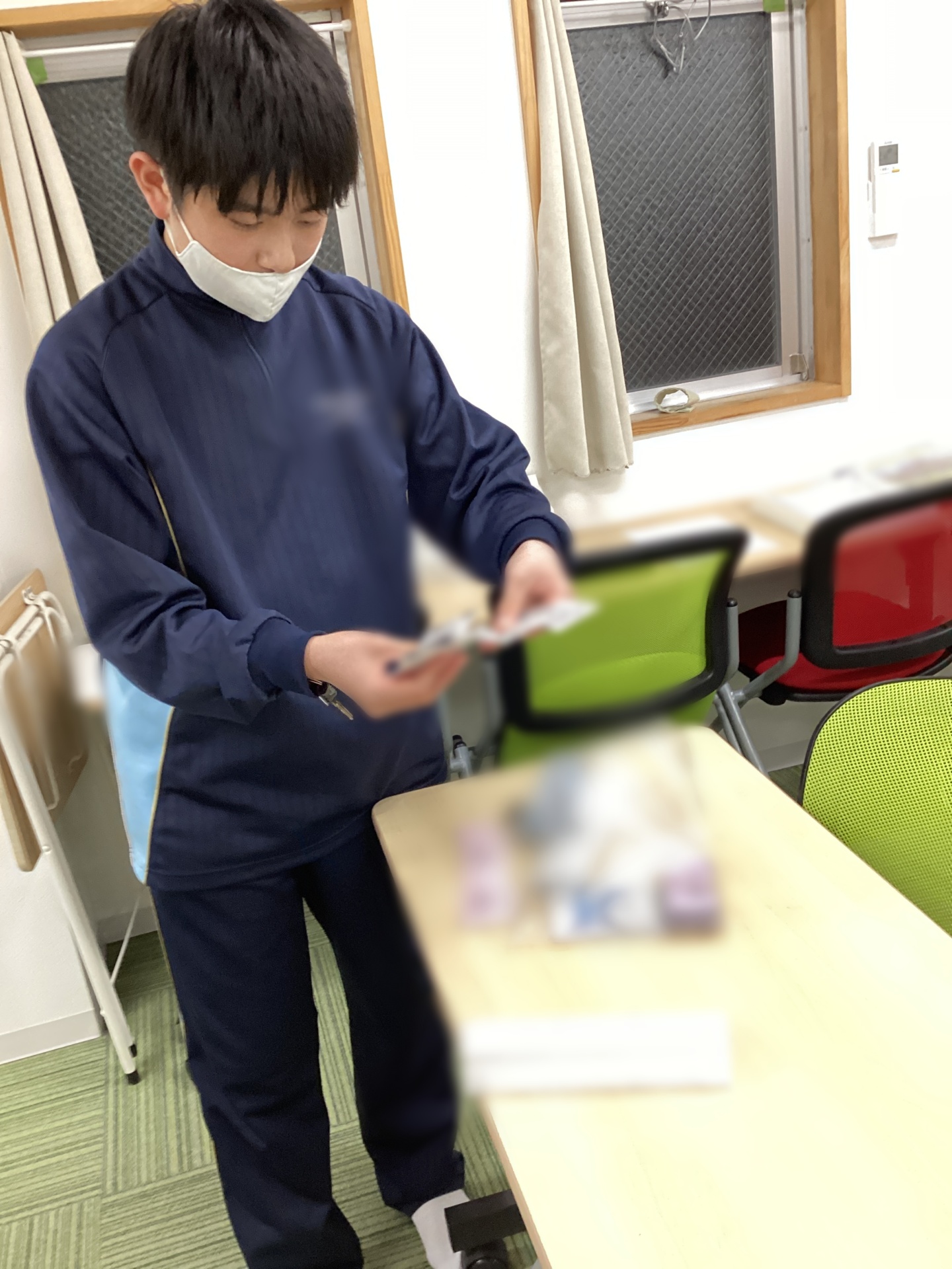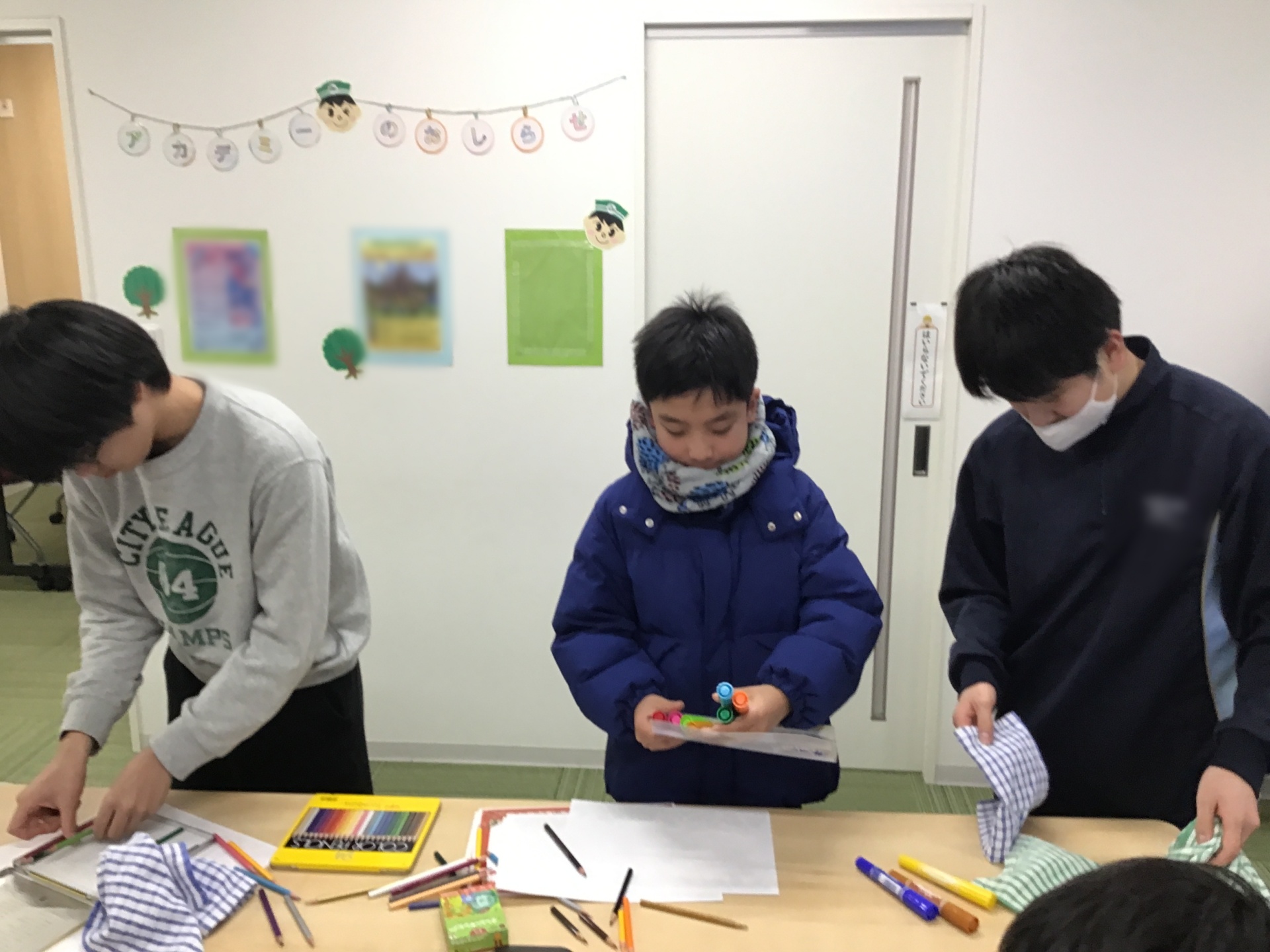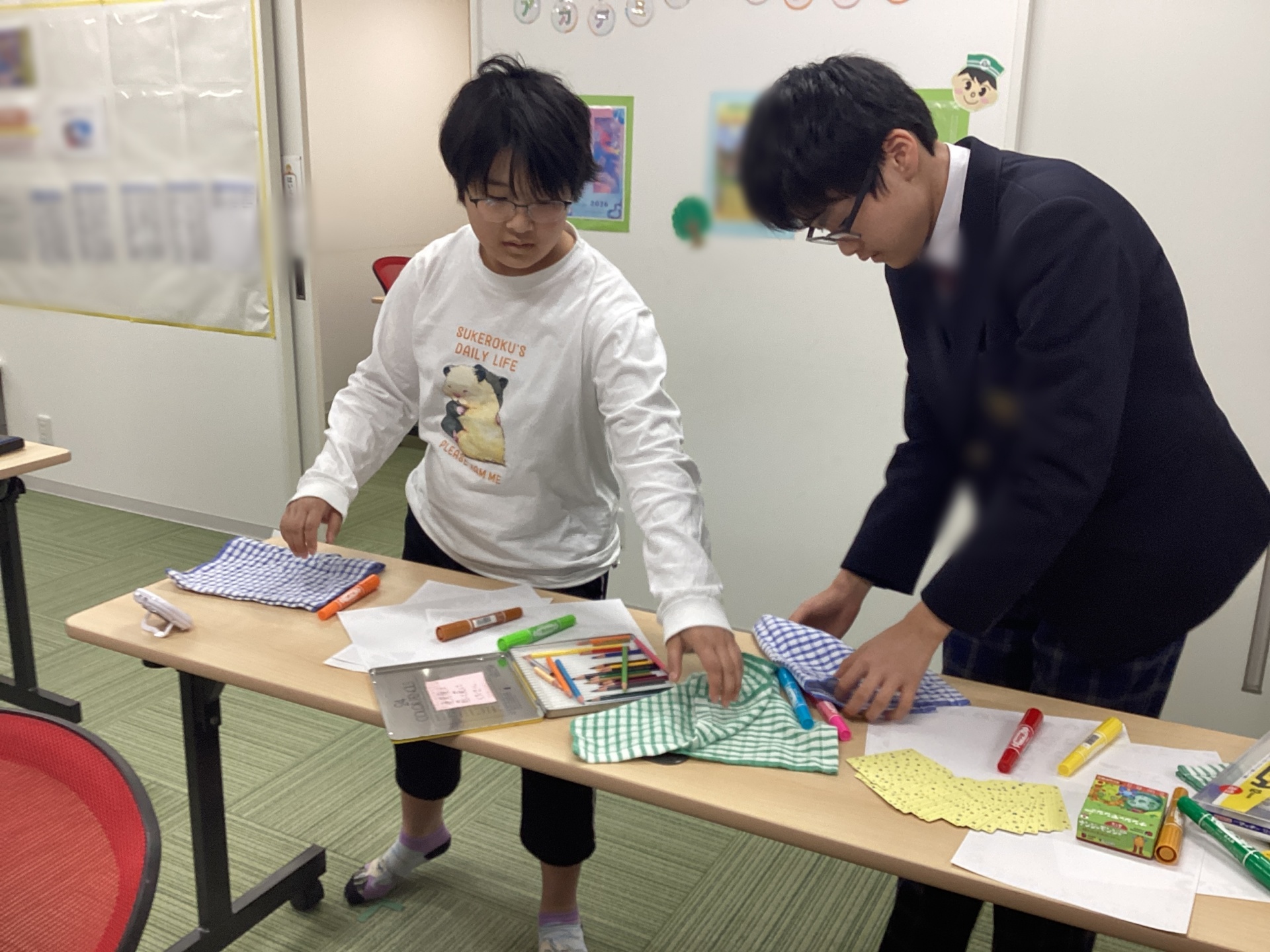 チームになって、物が沢山置いてある机の整理をしていただきました。