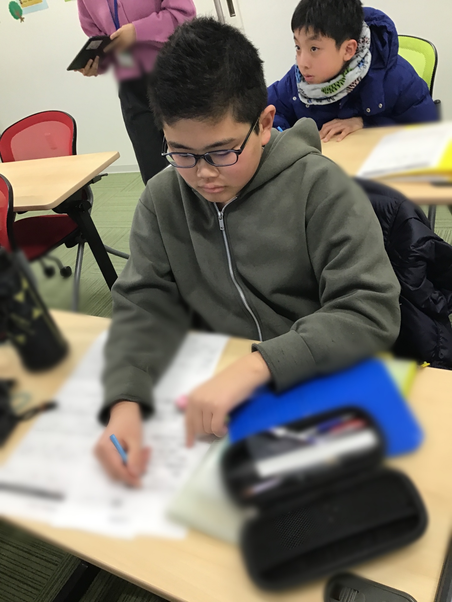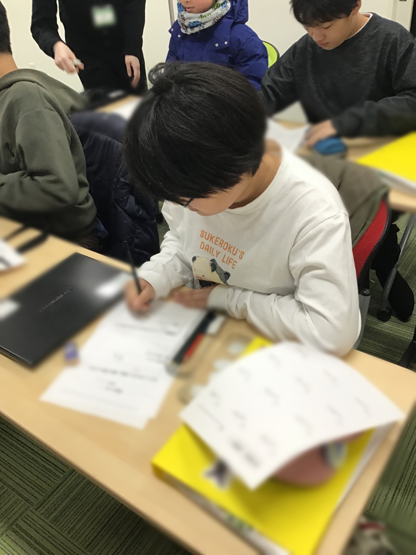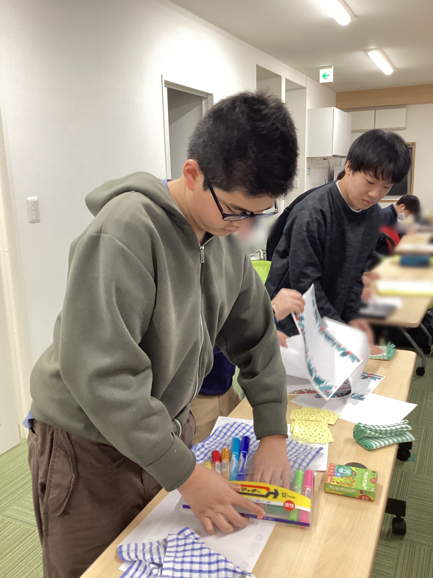 チームになって、物が沢山置いてある机の整理をしていただきました。