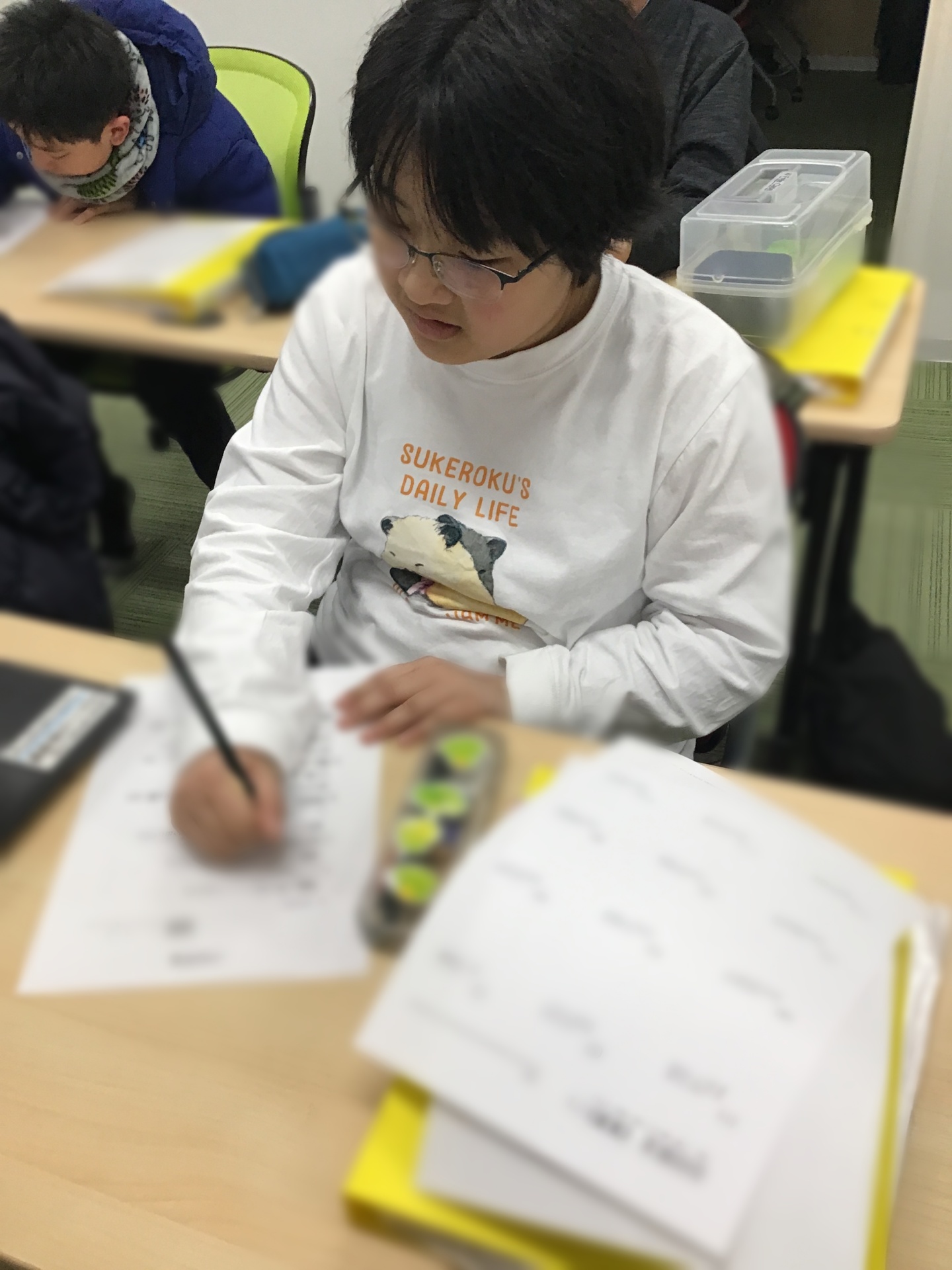 ▼片付け終了後に、タイム・自分の役割などをワークシートに記入していただきました。