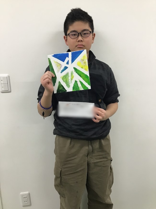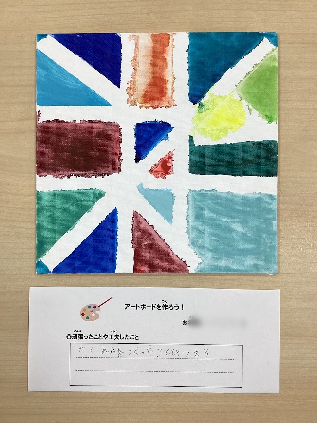 ▼絵の具が乾いたらマスキングテープを丁寧に剥がします