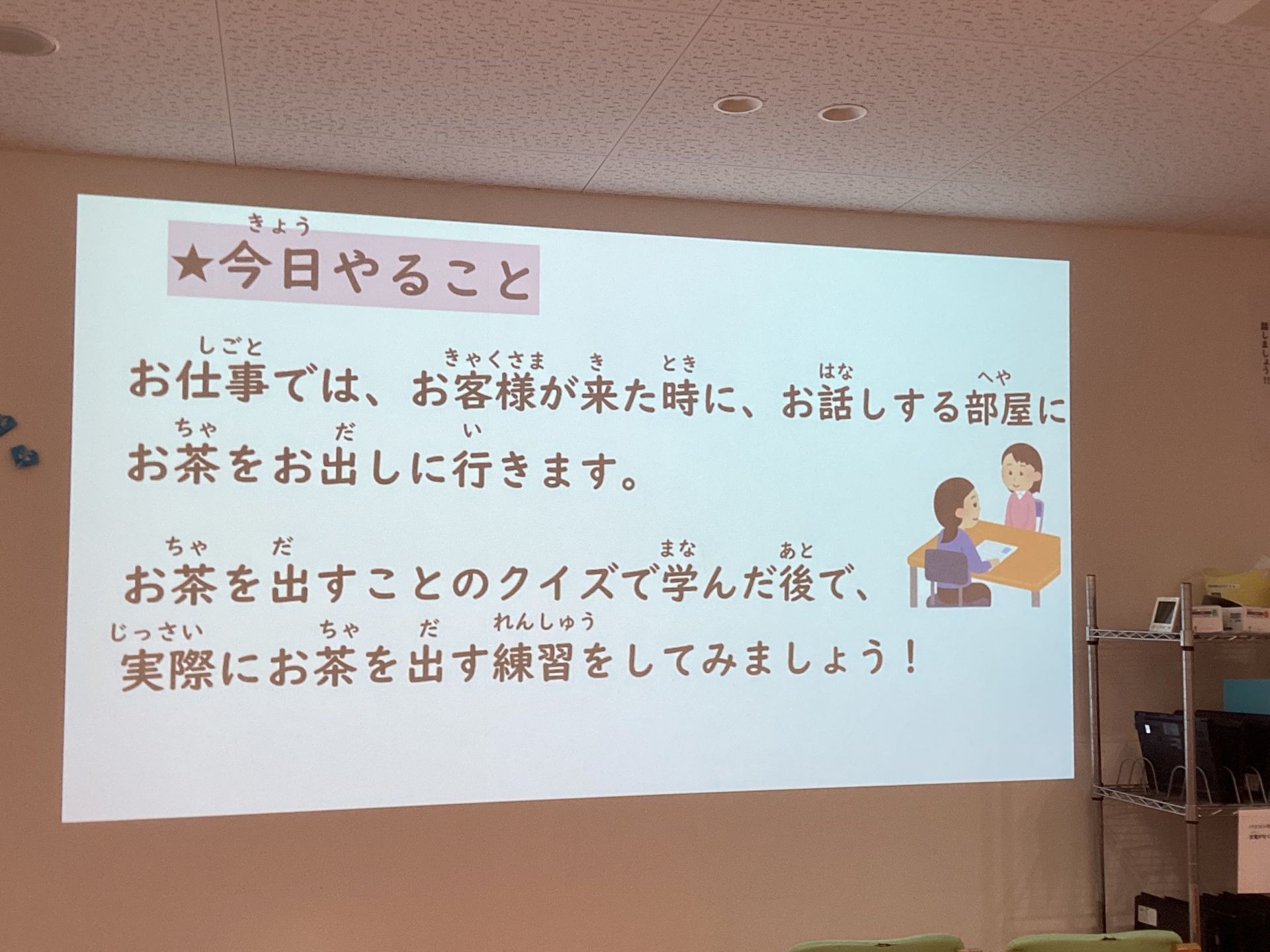 お客様役とお茶出しする役をやってみましょう