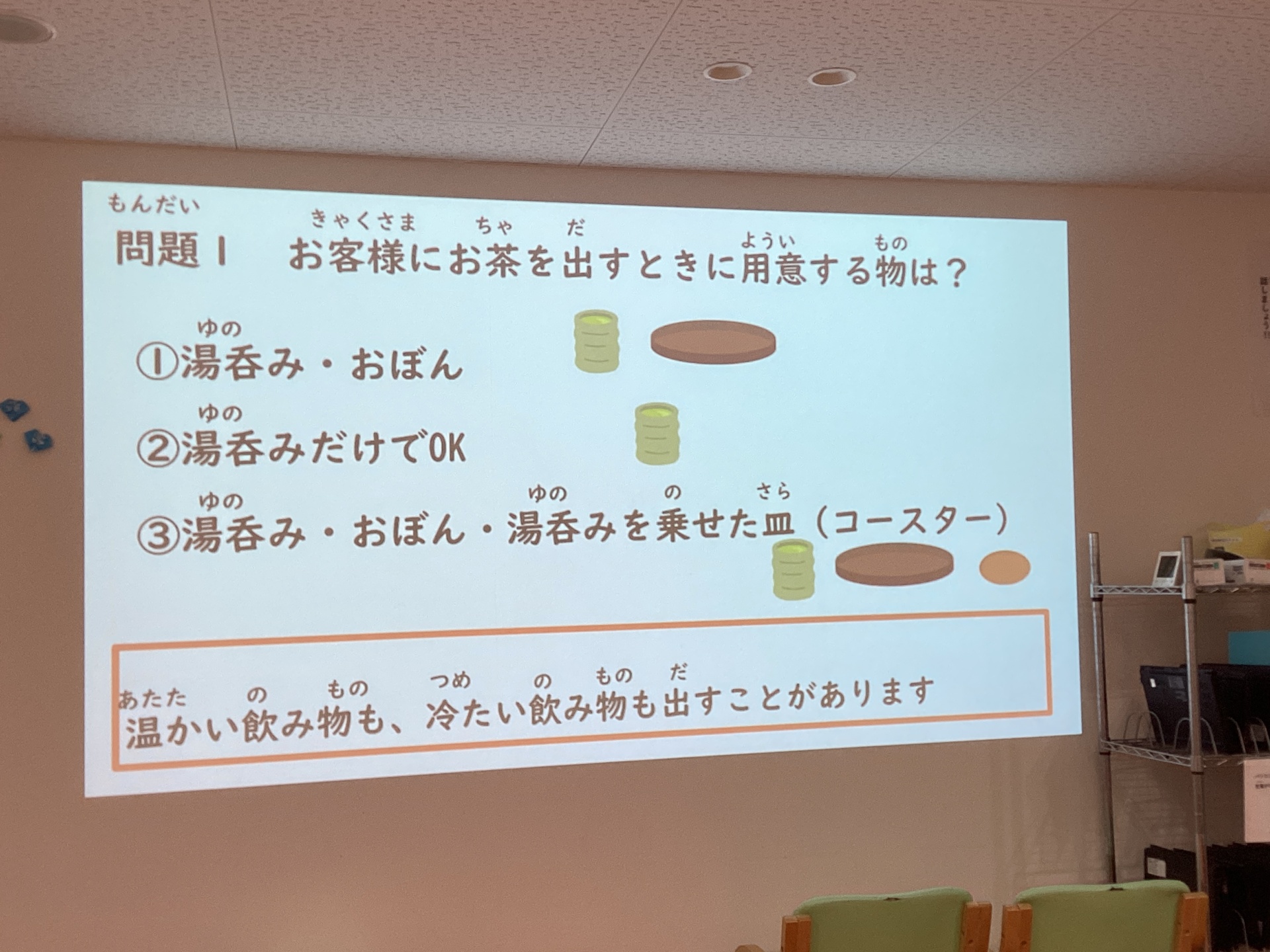 まずはクイズを通してお茶出しのことを知ってもらいました!